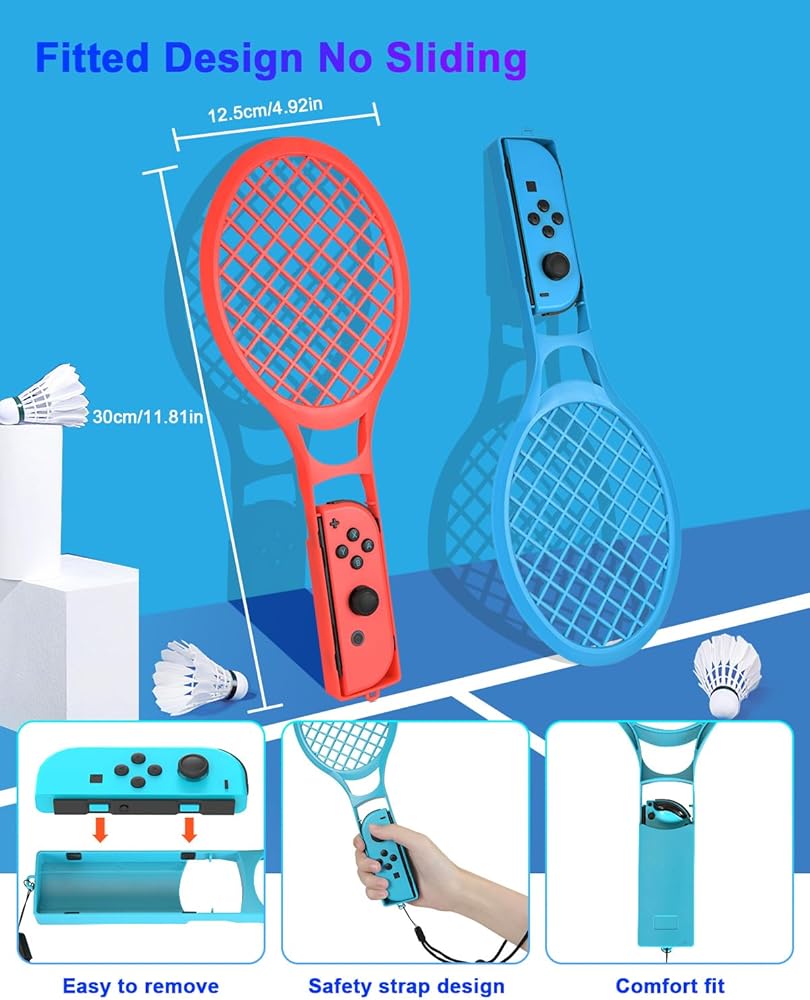 • 🎾 مضارب التنس وكرة الريشة ×2 - تحاكي أرجوحة مضارب التنس وكرة الريشة الحقيقية بفضل الحجم والشكل المريحين. استمتع بتجربة كرة الريشة الرياضية من Nintendo Switch وNintendo Switch Sports Tennis وMario Tennis Aces مع مضاربين متضمنين لمباراة تنافسية مع الأصدقاء و/أو العائلة