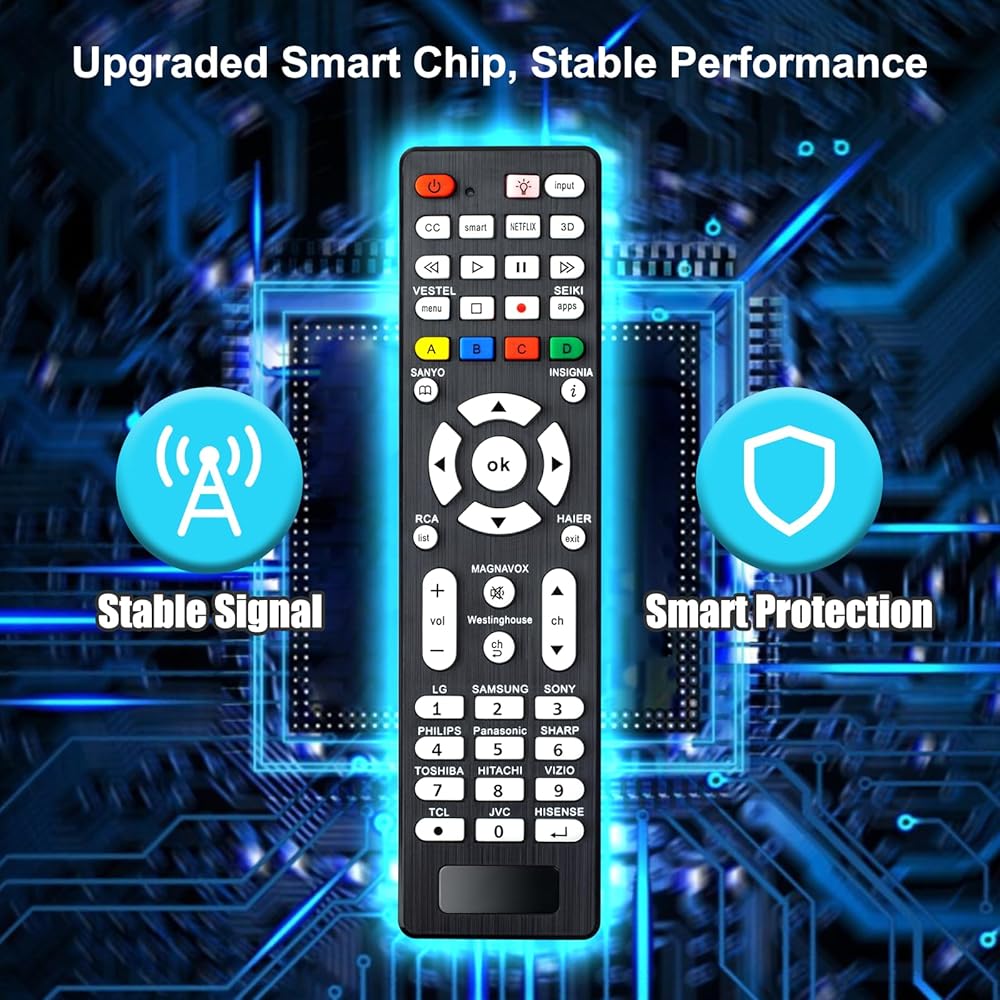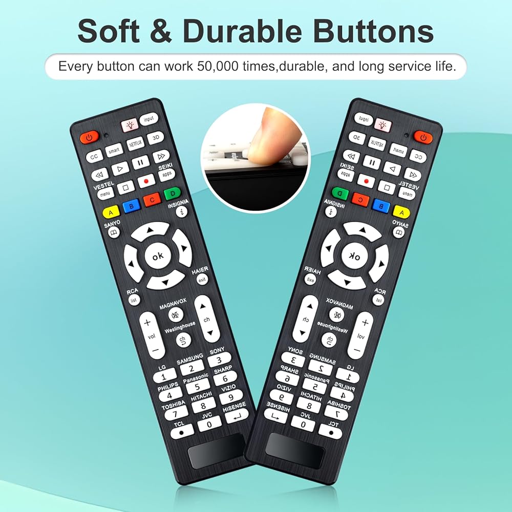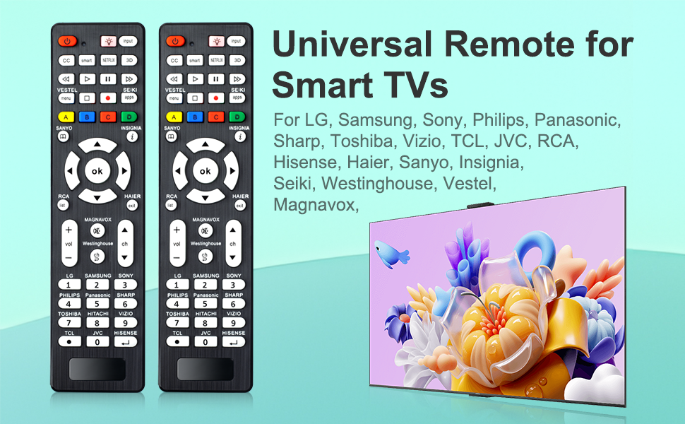 جهاز التحكم عن بعد العالمي للتلفزيونات الذكية: جهاز التحكم عن بعد البديل متوافق مع Samsung، LG، Sony، Sharp، Vizio، Philips، Toshiba، Sanyo، JVC، TCL، Hisense، Vestel، Seiki، Insignia، Magnavox، Haier، Panasonic TV، وغيرها من العلامات التجارية .