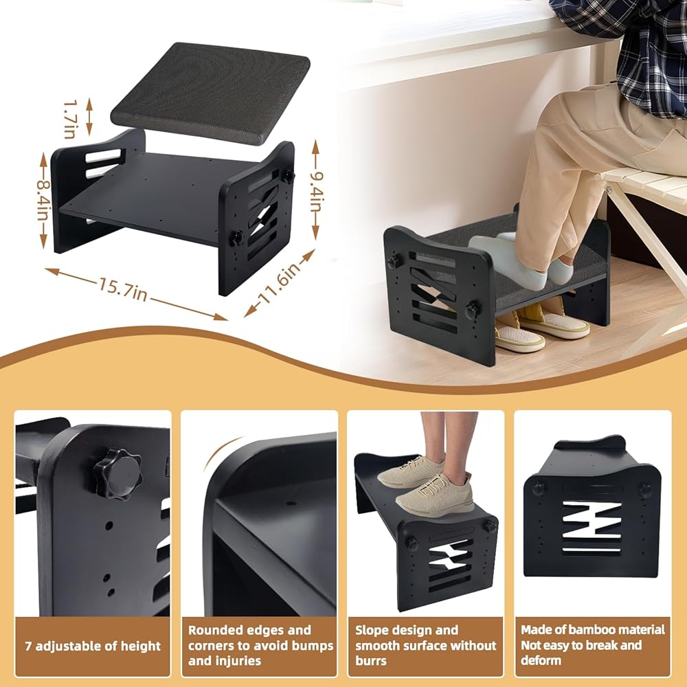 • EASY TO ASSEMBLE & CLEAN - This adjustable foot rest very easy to assemble and the height adjustment is great for different use. When you feel a dirty surface, just scrub it with a damp towel.