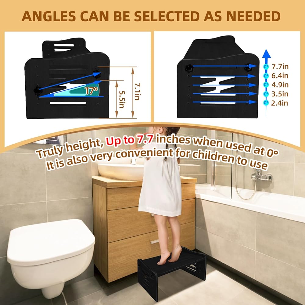 SUITABLE for BOTH ADULTLS and CHILDREN:The sturdy bamboo footstool has good load-bearing capacity, and a maximum height of 7.7 inches is very suitable for children to use. With a minimum height of 2.4 inches, people with long legs can also use it comfortably.