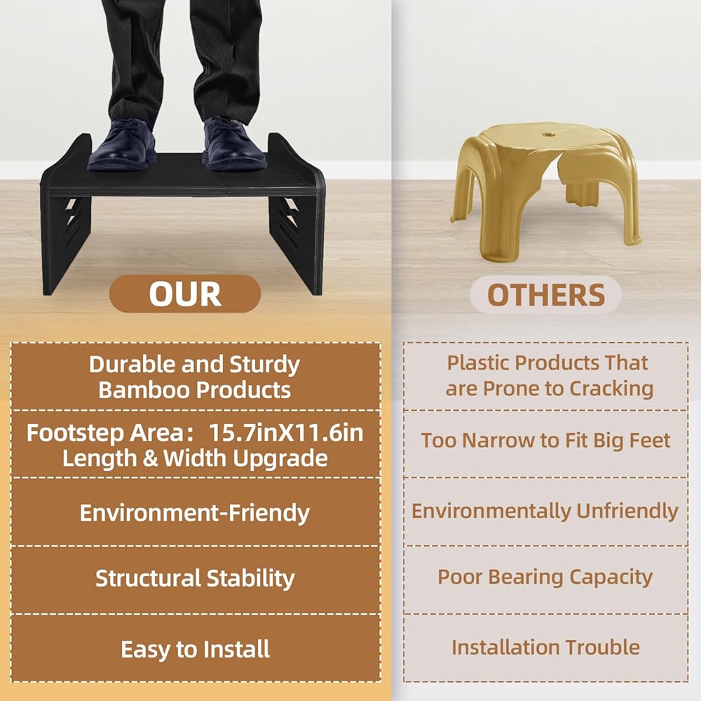 • STURDY & DURABLE - Using bamboo as raw material, the structure is stable, no shaking, no squeaking. More durable than plastic footrest, plastic footrest easy creak constantly, Too noisy and unstable.
