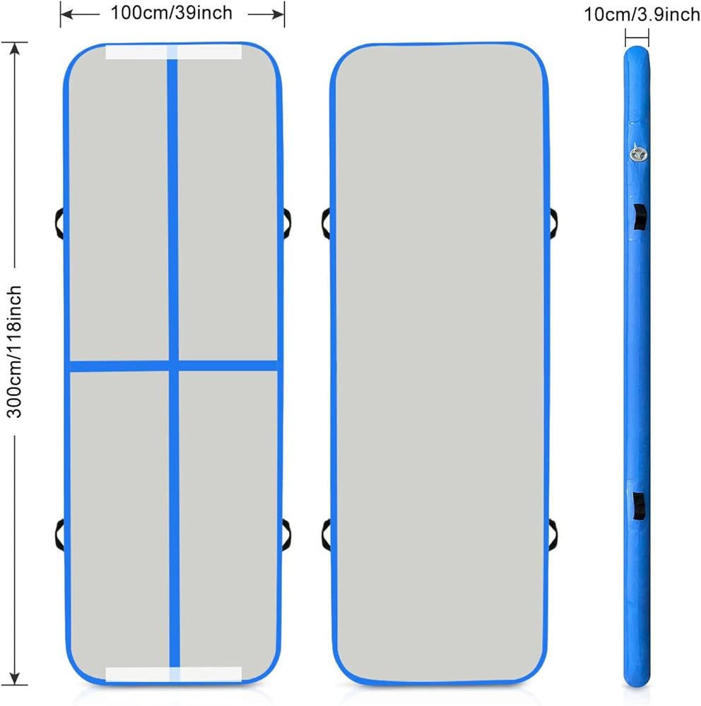 ● Inflatable Training Mat. Made of high quality PVC laminated fabric. Breathable Anti-Slip Wear Resistant Surface. Four Anti-Slip Carry Handles, Built-in Valve