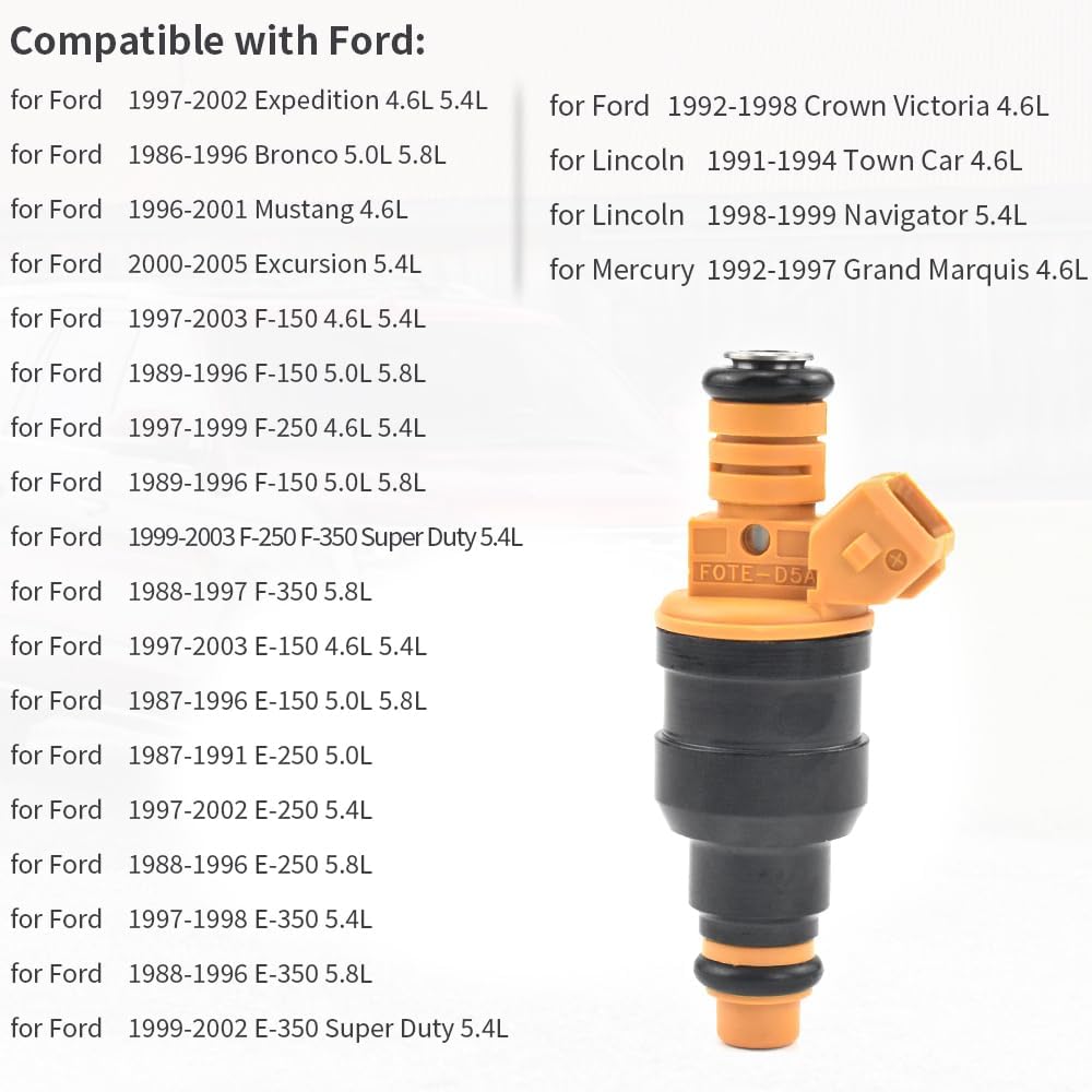 Compatible with Ford F-250 1997-1999 V8 5.4L, F-250 1989-1997 V8 5.8L, F-250 Super Duty 1999-2003 V8 5.4L, F-350 1989-1997 V8 5.8L, F-350 Super Duty 1999-2003 V8 5.4L, Mustang 1996-2004 V8 4.6L, Thunderbird 1994-1994 V8 4.6L, E-150 Econoline Club Wagon 2000-2002 V8 4.6L, E-350 Super Duty 2001-2003 V8 5.4L; Compatible with Lincoln Navigator 1998-1999 V8 5.4L, Town Car 1991-1994 V8 4.6L