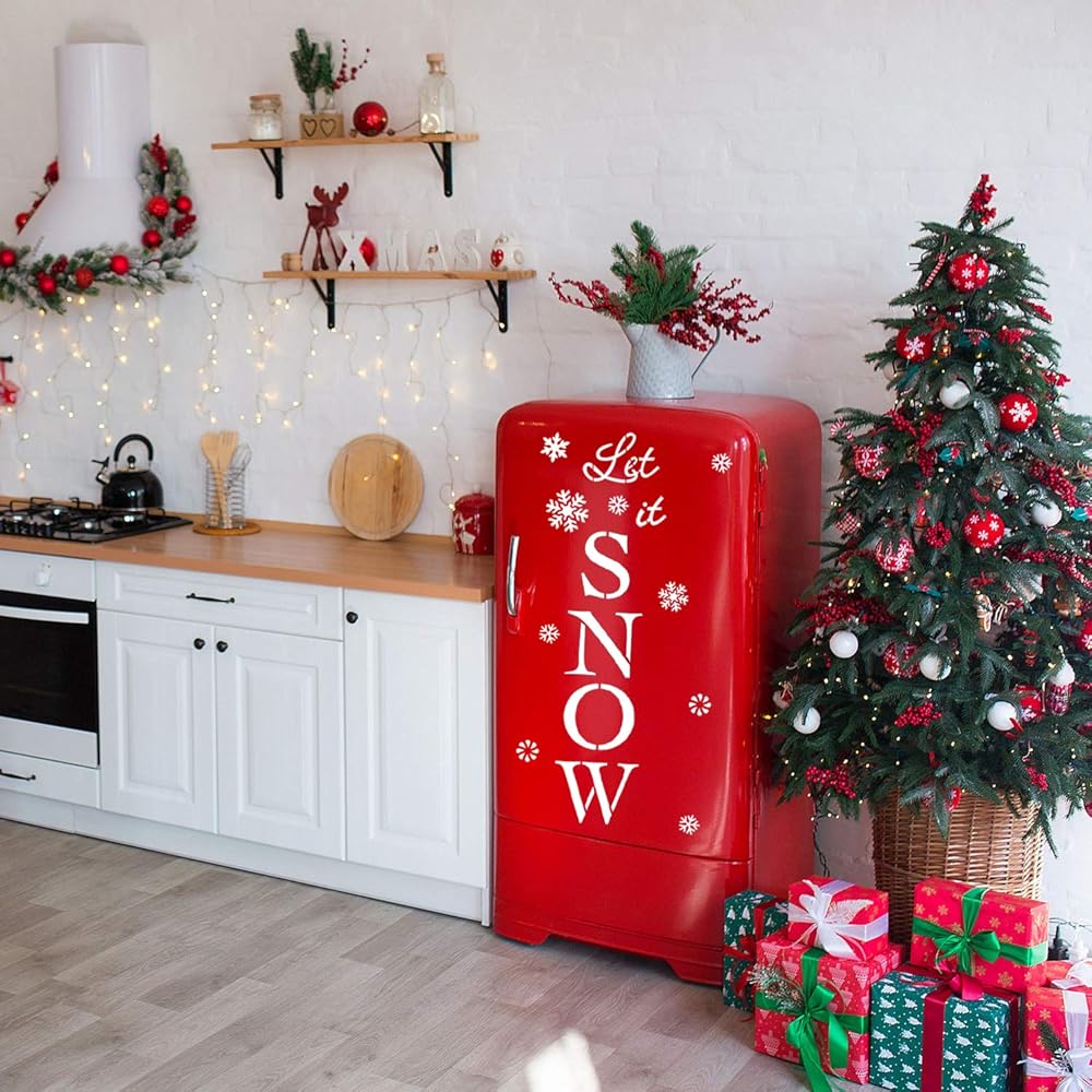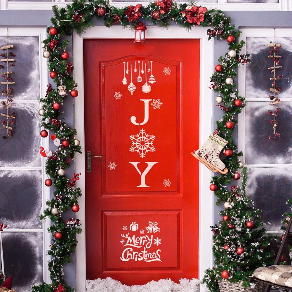 Christmas Stencils for Crafts, Let It Snow Stencil Porch Sign Merry Christmas Stencil for Painting on Wood, Reusable Snowflake Joy Stencil Christmas Painting Stencils for Winter Holiday Home Decorations