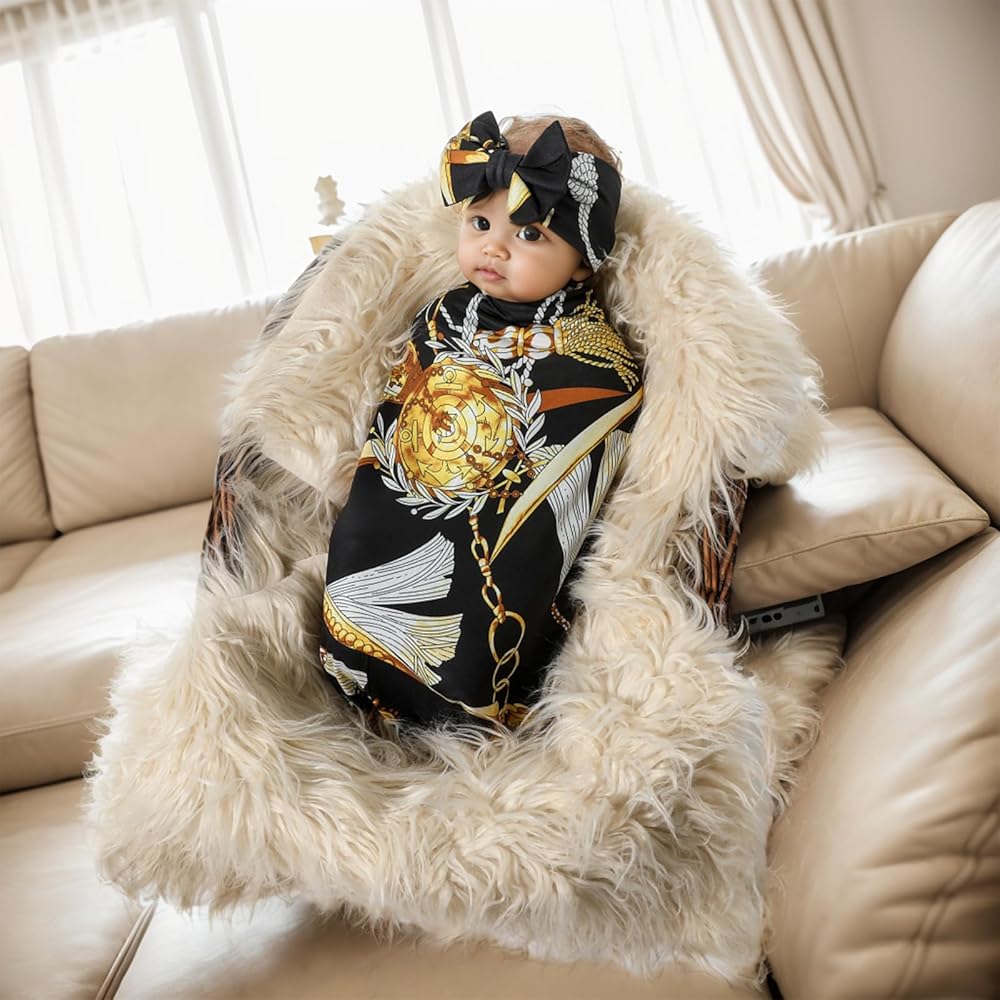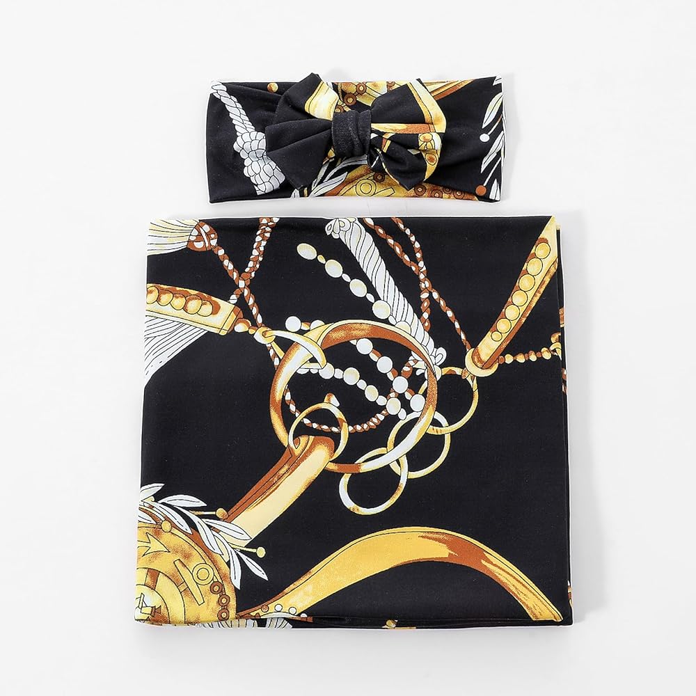 Newborn swaddle blanket headband set flower print baby receiving blankets