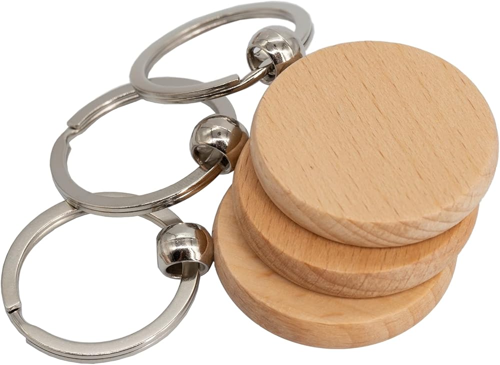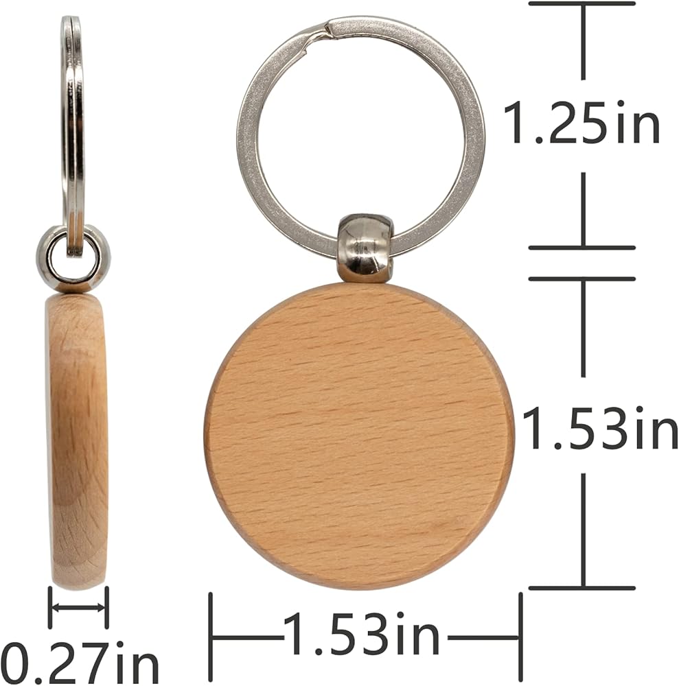 50 قطعة من فراغات نقش الخشب سلاسل مفاتيح خشبية فارغة (دائرية) TFoRibbon00057