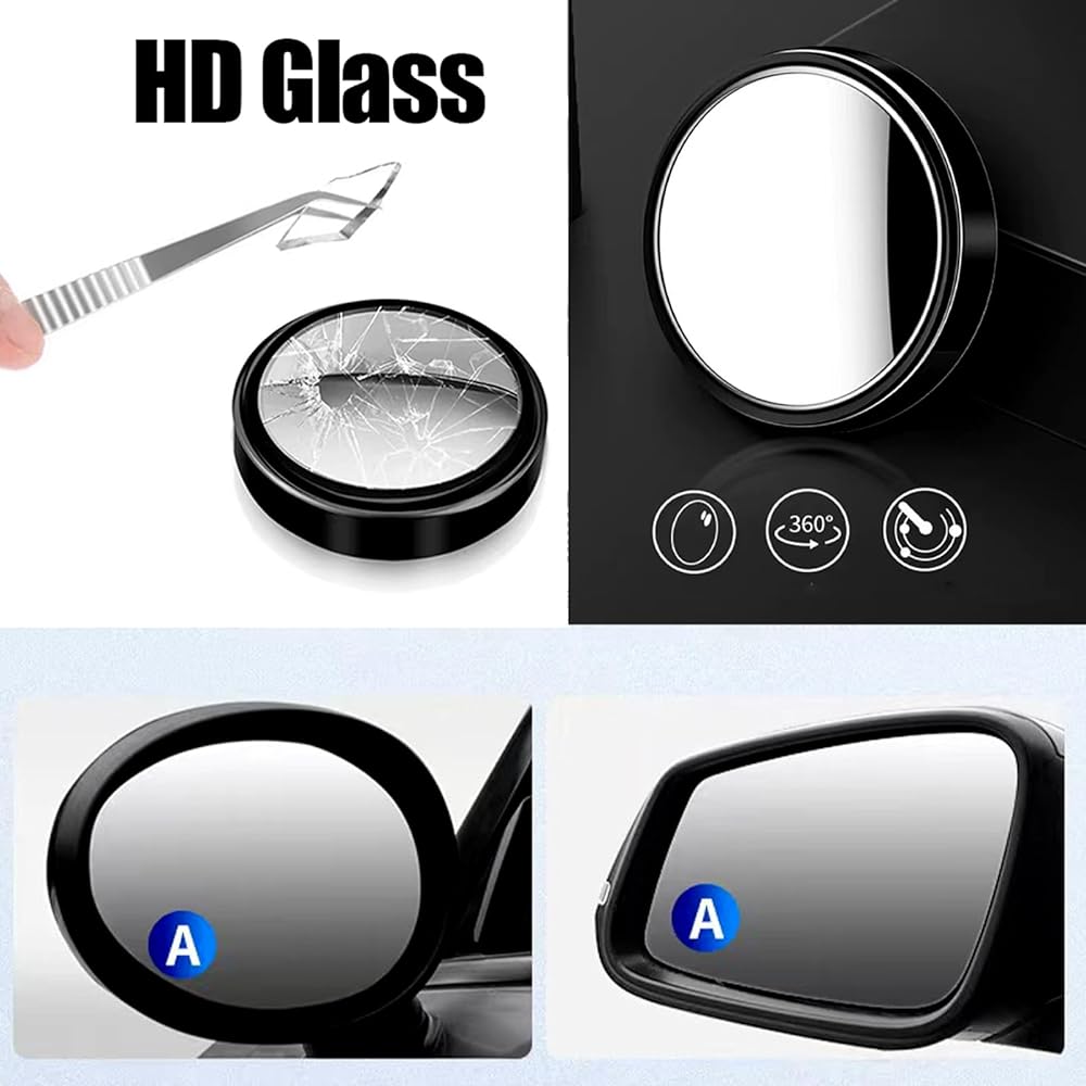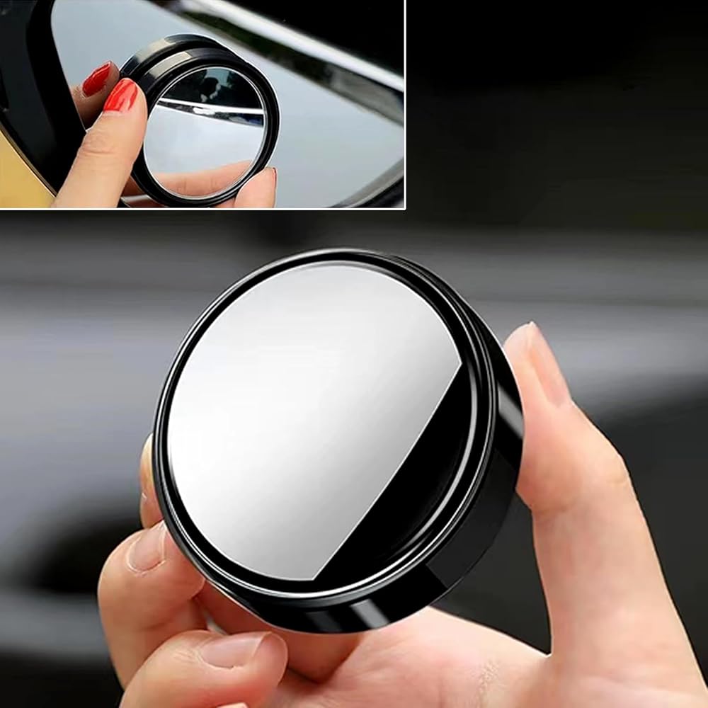 مرآة جانبية للسيارة ذات النقطة العمياء، مرآة دائرية عالية الدقة من الزجاج للنقطة العمياء، مرآة رؤية خلفية محدبة (عبوتان، أسود)