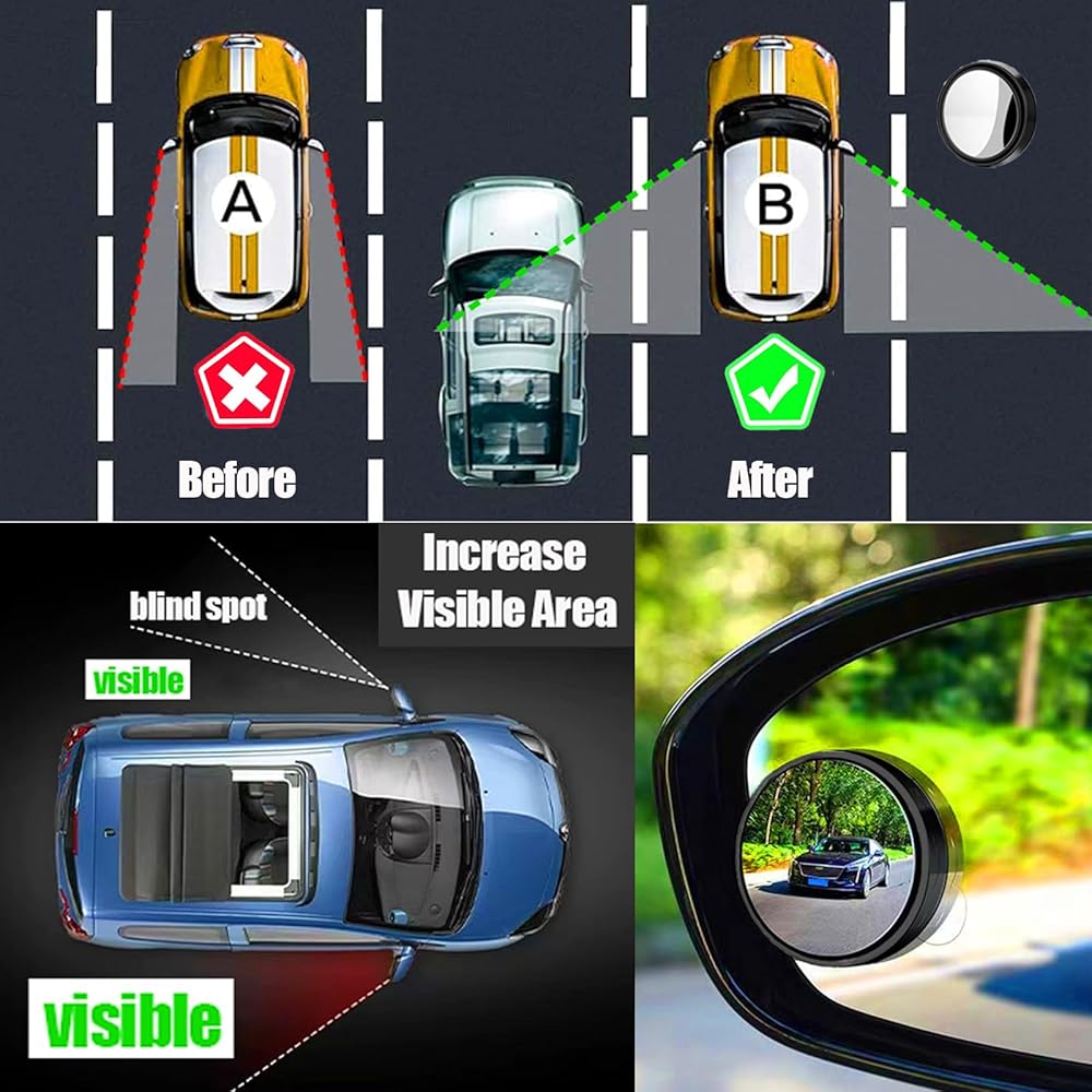 - مرآة الرؤية الخلفية الجانبية المحدبة مصممة لزيادة مجال الرؤية وتقليل المنطقة العمياء، وتجنب الحوادث أو الاصطدام المحتمل.