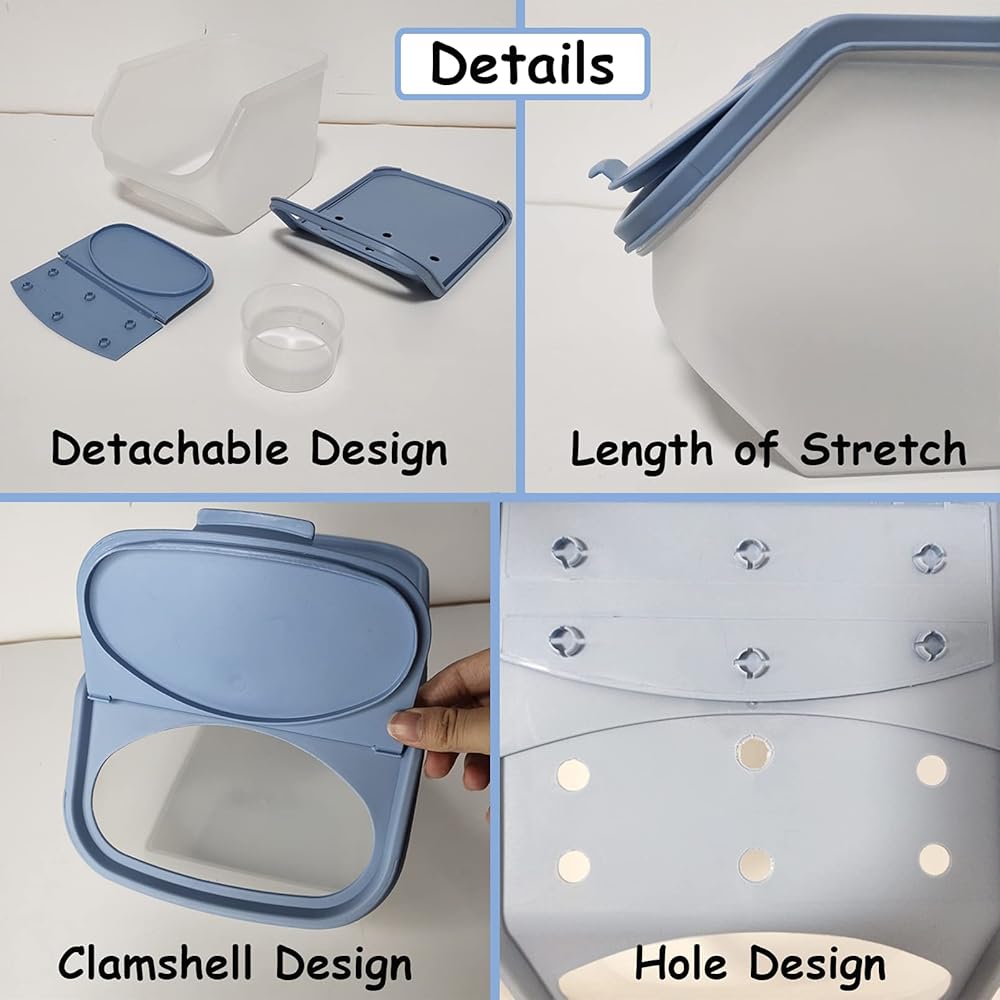 【تصميم مدروس】يتميز حمام رمل الهامستر الخاص بنا بتصميم قابل للإزالة لسهولة التنظيف. تمنع الفتحة العلوية القابلة للطي الرمال من الانسكاب خارج الصندوق، لذلك يمكنك الحفاظ على منطقة معيشة حيوانك الأليف نظيفة ومرتبة. وفي الوقت نفسه، يحتوي بيت حمام الشنشيلا على ستة فتحات تهوية في الأعلى، مما يسمح بالتهوية السهلة وتدوير الهواء.