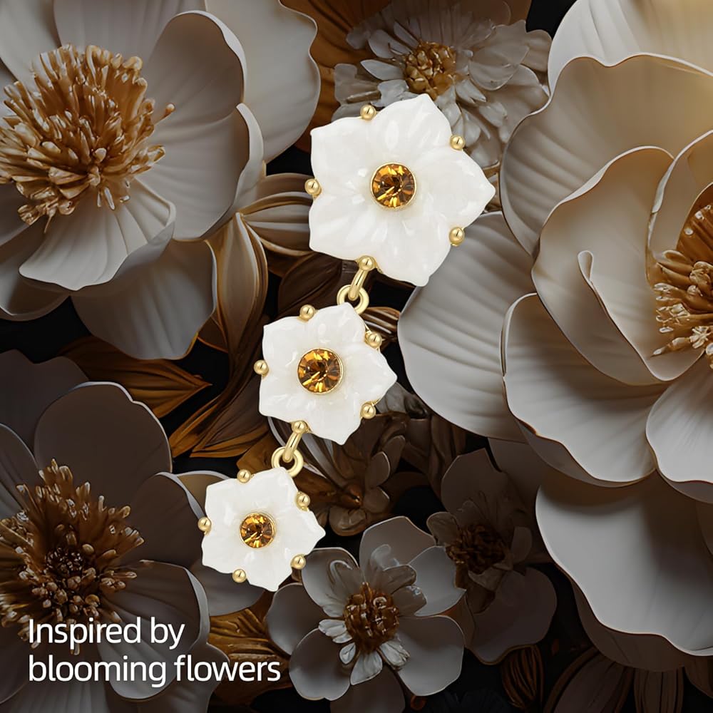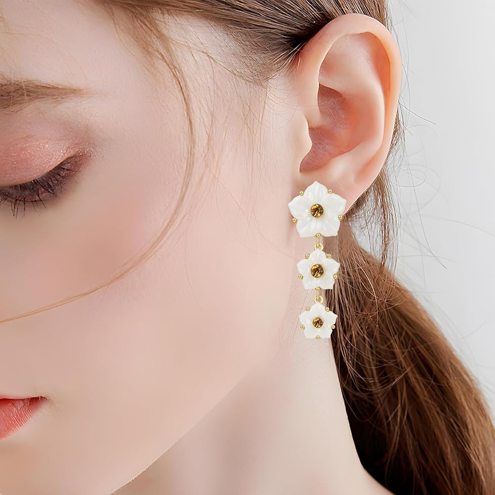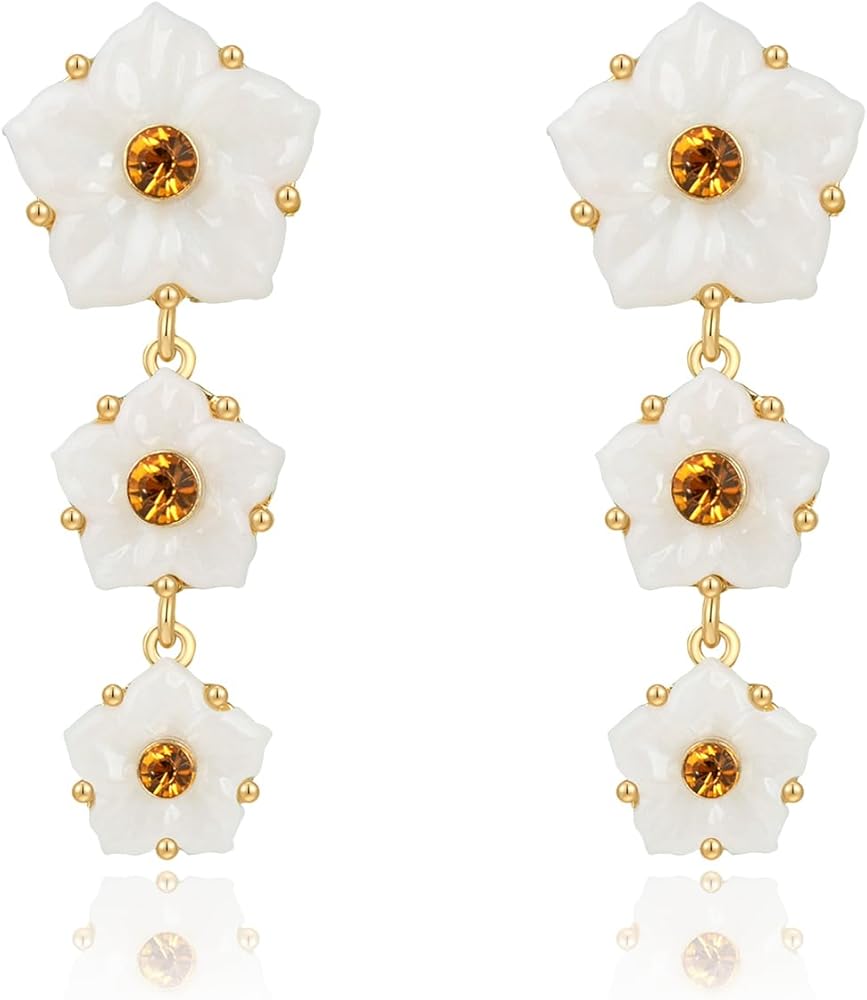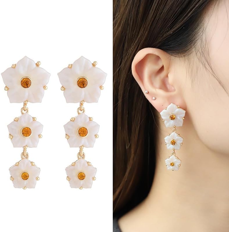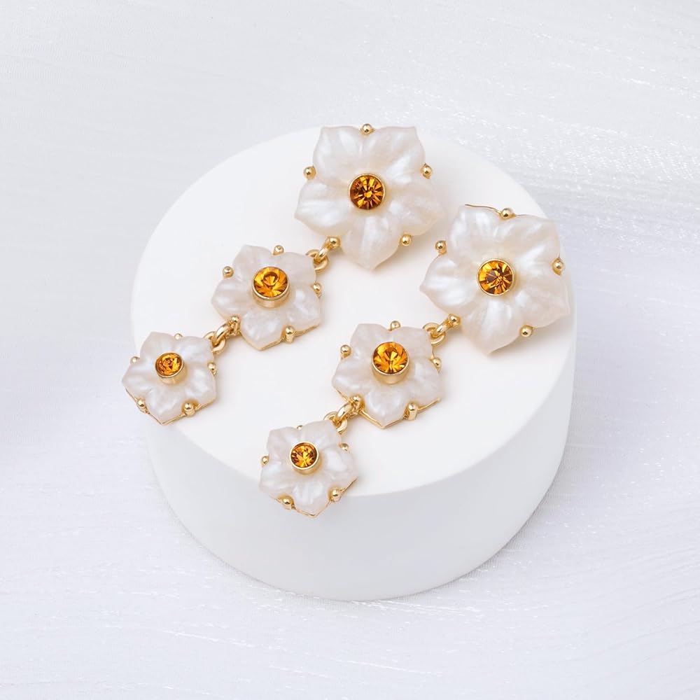 ❤ إضافة الأزهار ❤ تجتمع الأزهار ذات اللمسات النهائية MOP وأحجار اللون الكهرماني معًا لإنشاء هذه الأقراط الزهرية الجميلة على شكل دمعة.