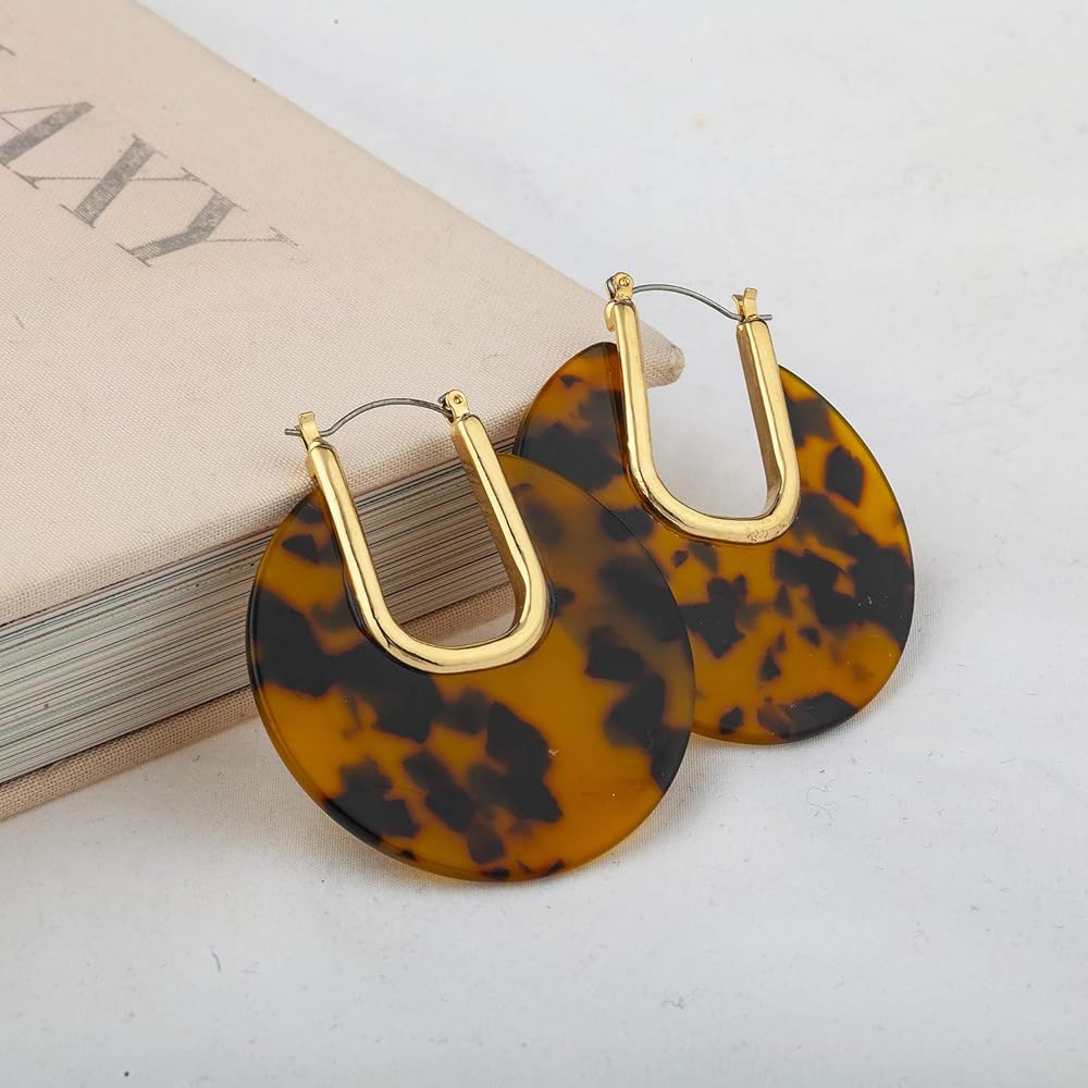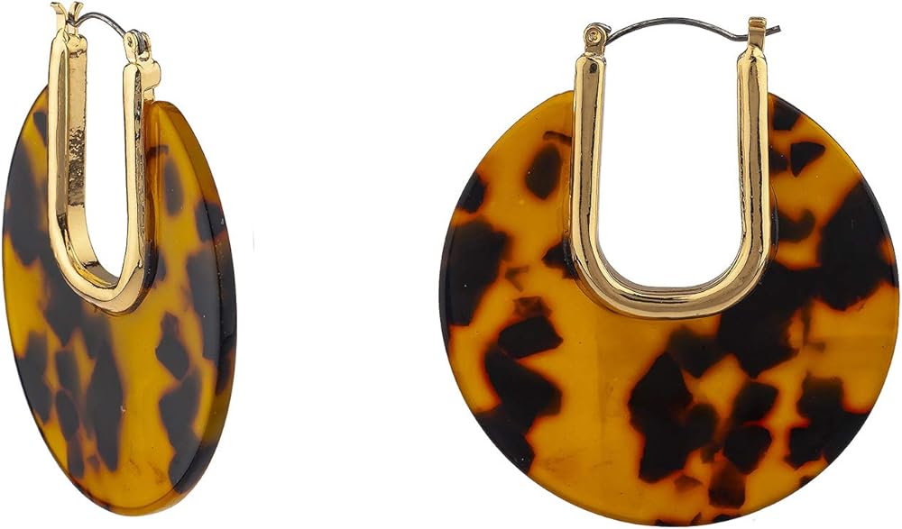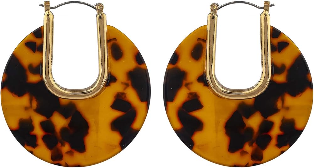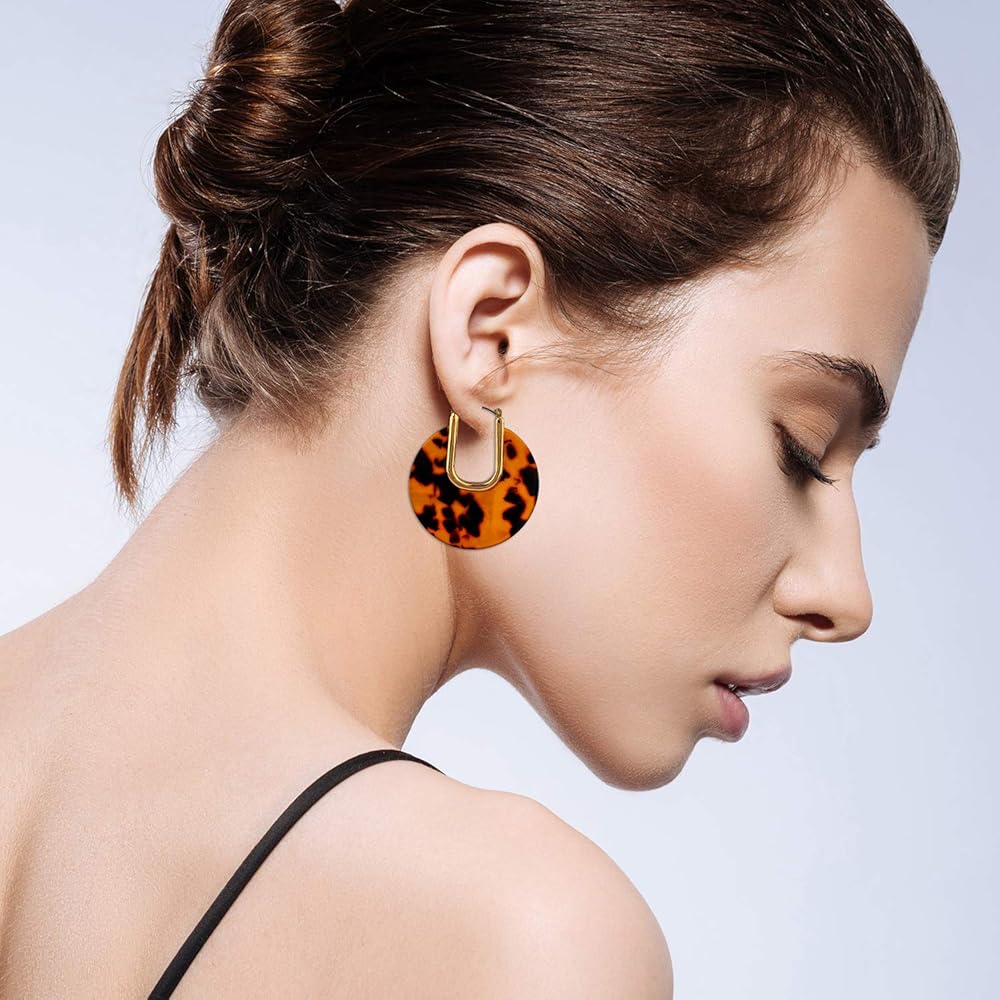 إكسسوارات لوكس أقراط متدلية دائرية الشكل من الراتينج الذهبي بطبعة جلد الفهد