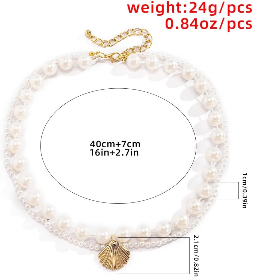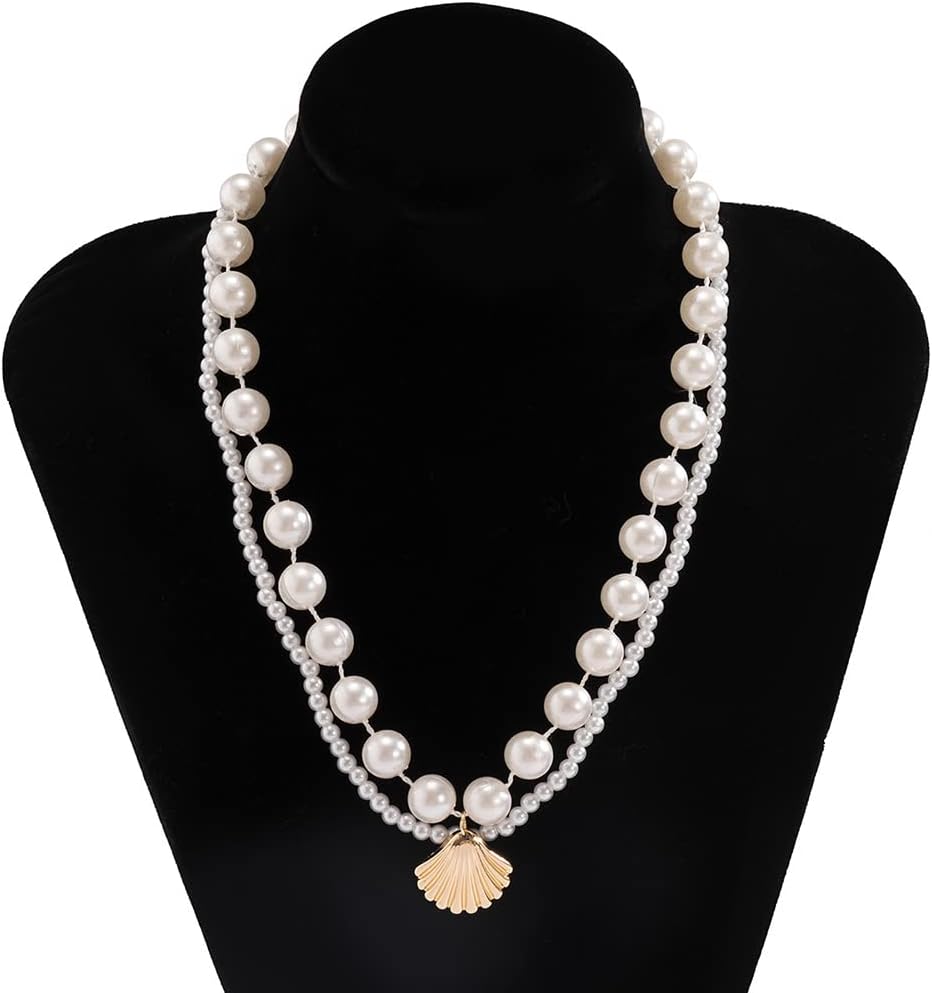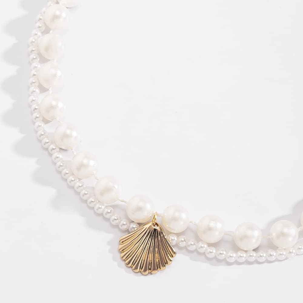 قلادة على شكل سلسلة ترقوة من اللؤلؤ اللذيذ، قلادة على شكل صدفة، قلادة ذات طبقات للنساء والفتيات