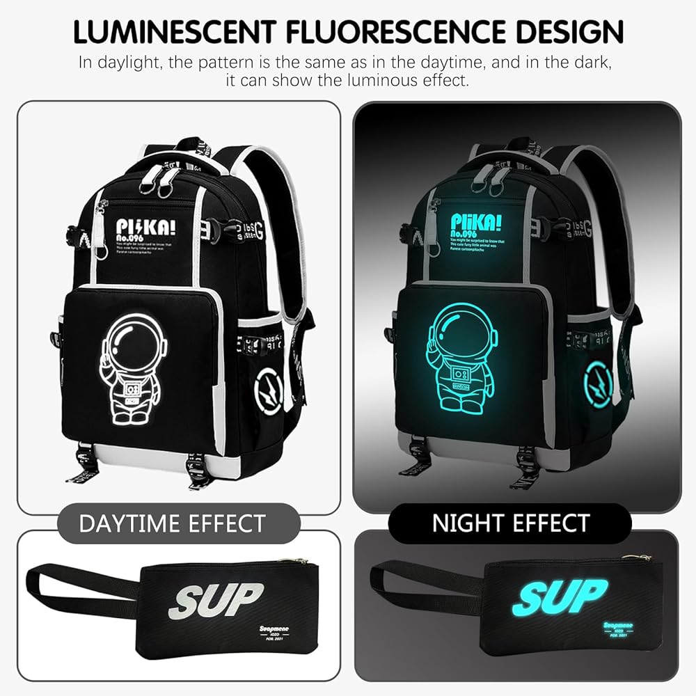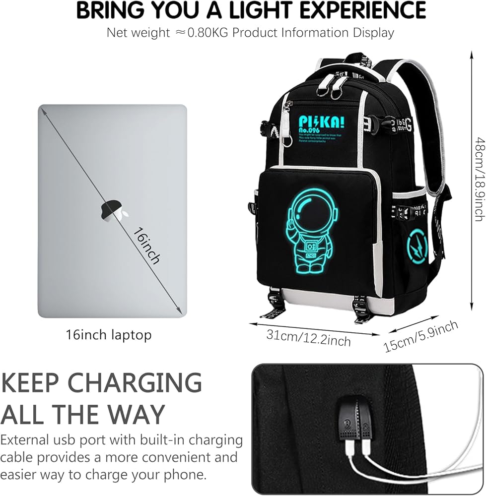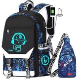 حقيبة ظهر للأولاد حقيبة سفر بتصميم الرسوم المتحركة حقيبة ظهر للكمبيوتر المحمول بنمط مضيء - حزام كتف قابل للتعديل حقيبة مدرسية مضادة للماء مع منفذ شحن USB وحقيبة أقلام بقفل مختلط