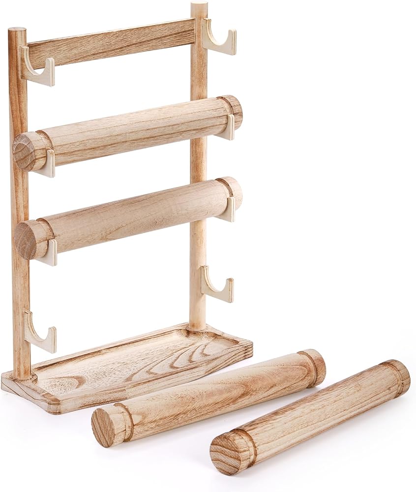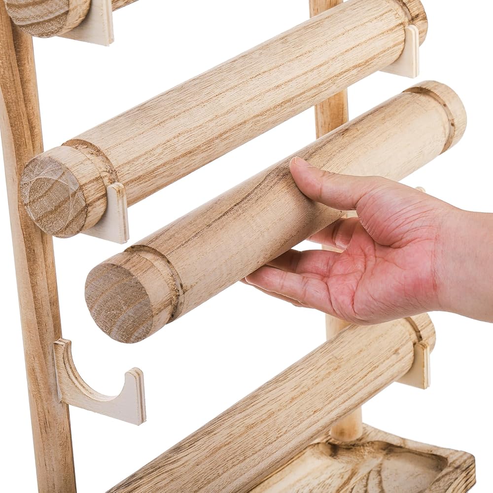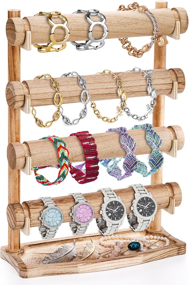 حامل عرض سوار من 4 طبقات من ديكونوي، رف عرض إكسسوارات مجوهرات خشبية، حامل منظم سوار ريفي للساعة، الإسورة، القلادة، الخواتم، تخزين ربطات العنق