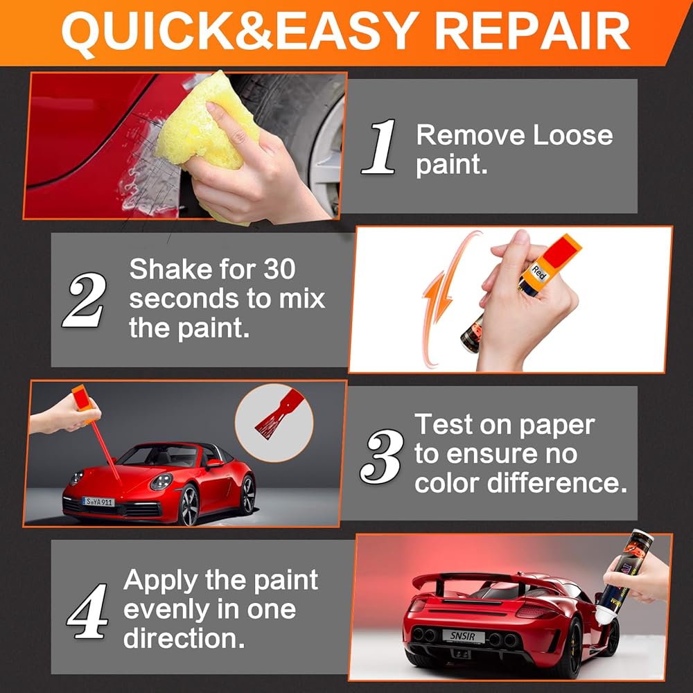 【حماية إضافية لطلاء السيارة】يمكن أيضًا استخدام إصلاح خدوش طلاء السيارة الخاص بنا في المناطق التي تم لمسها بالفعل، أو يمكن استخدامه لتلميع السيارة لمنحها لمعانًا أعلى. أثناء قيادتك اليومية، لا مفر من أن تواجه حوادث صغيرة لا يمكنك توقعها. إن تطبيق طلاء السيارات الأحمر يشبه إضافة طبقة إضافية من الفيلم الواقي للسيارة لحماية سيارتك.