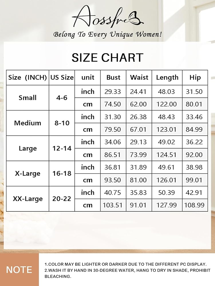 X-Large: Length: 126.00 cm/49.50", Bust: 93.50 cm/36.75", Waist: 81.00 cm/32.00", Hip: 99.00 cm/39.00",