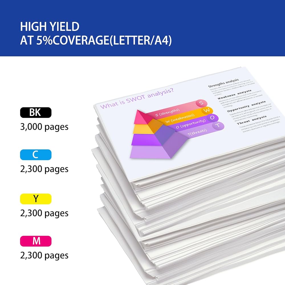 【High Yield】:Each TN229XLBK TN229XL TN229XL Black Toner Cartridge yields up to 3,000 pages, while the TN229XLC TN229XLM TN229XLY Color Toner Cartridges produce up to 2,300 pages each, based on 5% coverage (Letter/A4).