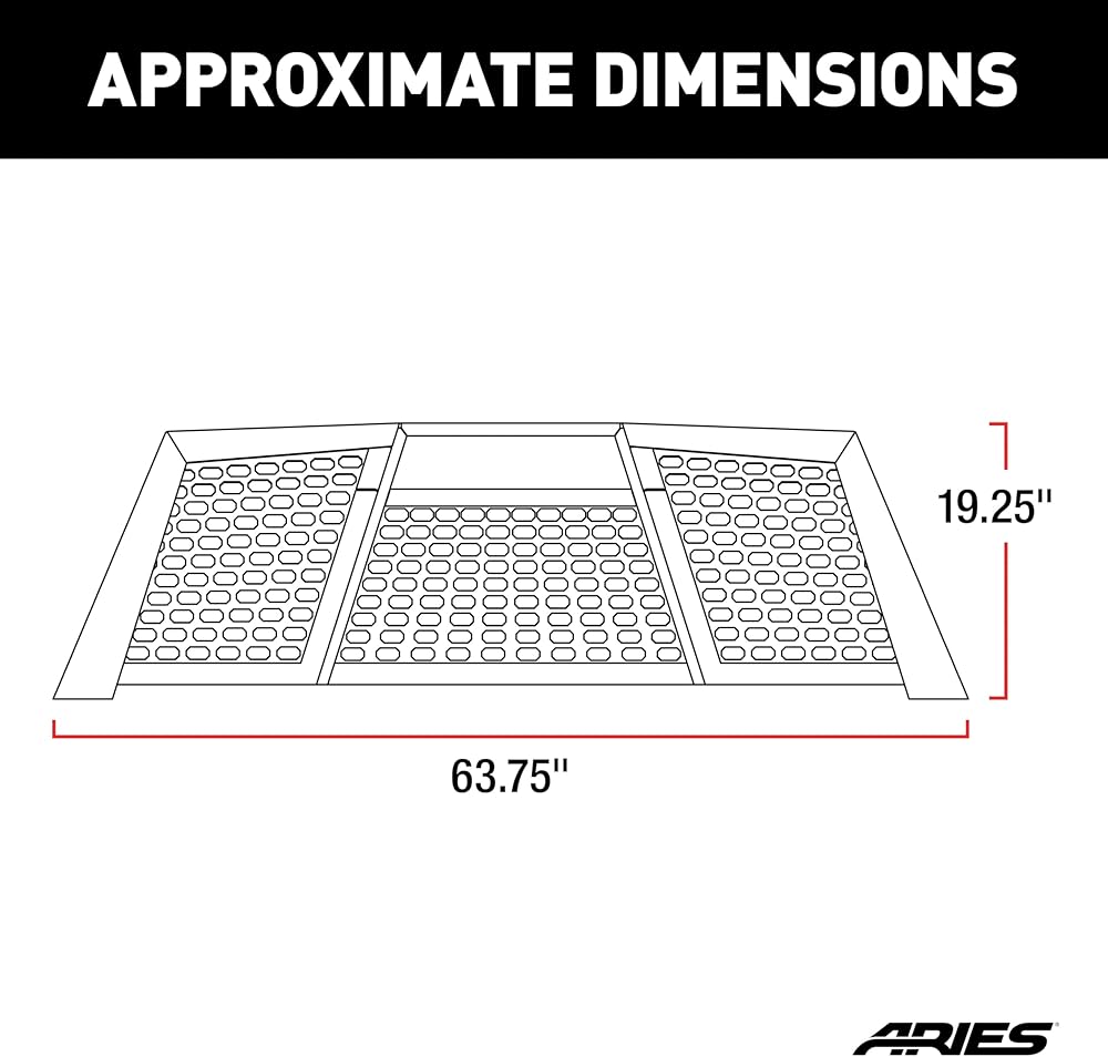 The ARIES Switchback headache rack is an aggressive, off-road-style truck headache rack that features rust-free construction, an LED-compatible top edge and a patented installation system -- all to make sure your truck not only stands out on the road, but also has the backbone to tackle the trail. The Switchback truck headache rack is built with all-aluminum construction, meaning you will never have to worry about rust. Aluminum offers solid strength while helping to keep your truck lightweight. The aluminum alloy is also protected with a highly durable carbide black powder coat finish that maximizes corrosion resistance and adds a sleek finishing touch. The Switchback is built to readily accept aftermarket lighting. Its top edge is a slotted channel that accepts LED light bars or work lights. Three 10" LED light bars (ARIES #1501260) are recommended. The slotted channel allows for easy installation of the lights and adjustable positioning. Installing the ARIES Switchback aluminum headache rack couldn't be easier with our patented mounting system. It features unique stake pocket anchors that requires no drilling or complicated procedures. Simply drop it in, tighten a single bolt on each side, and you're ready to hit the trails. The Switchback also features a three-piece assembly, making it easier to ship, and allowing you to mount the headache rack without the center section for easy access to the rear cab window. Each ARIES Switchback headache rack is designed for vehicle-specific installation for a custom fit. This particular model fit specific years of the Chevy Colorado and GMC Canyon (see application info to verify fitment). Brackets and mounting hardware are included.