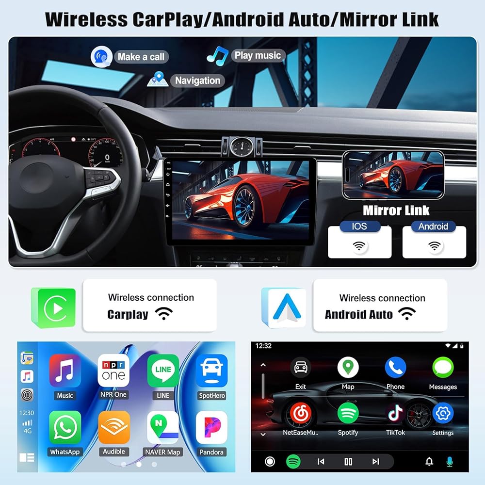 [Apple CarPlay اللاسلكي وAndroid Auto اللاسلكي] وحدة رأس Ford fusion android مدمجة في Apple CarPlay وAndroid Auto، كابل USB سلكي أو اتصال لاسلكي Bluetooth وWiFi لـ Carplay وAndroid Auto. يحتاج Android إلى تنزيل تطبيق Android Auto. سيحصل استريو السيارة بسرعة على التطبيق على هاتفك المدعوم بالنظام الحالي، مثل الرسائل والموسيقى والخريطة وتنفيذ الأمر الصوتي مثل Siri أو Google Assistant لتشغيل التطبيقات أو التحكم في استريو السيارة.