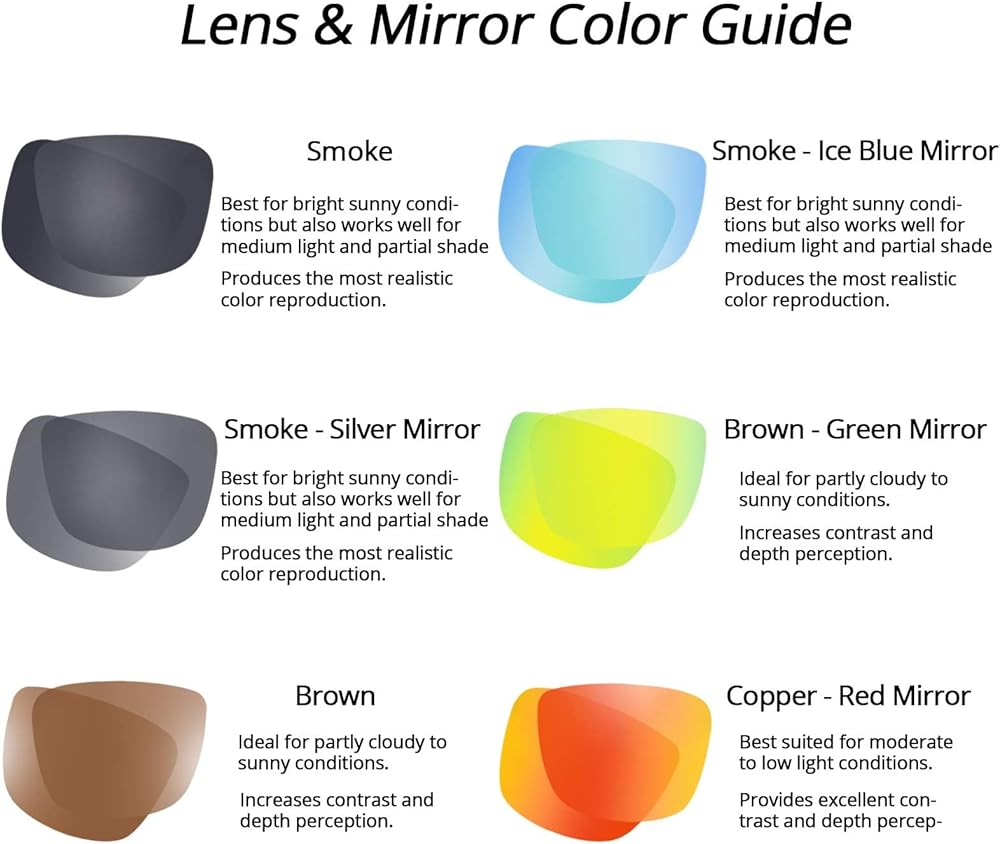 • UV PROTECTION and LENS COLORS – Smoke sunglasses lenses are ideal for bright sunlight with the most realistic color reproduction. Brown sunglasses lenses increase contrast and depth perception, ideal for partly cloudy to sunny conditions. Copper sunglasses lenses provide excellent contrast and depth perception, best suited for moderate to low light. Extremus sunglasses block 100% of the harmful UVA and UVB rays and meet or exceed all U.S. ANSI standards.