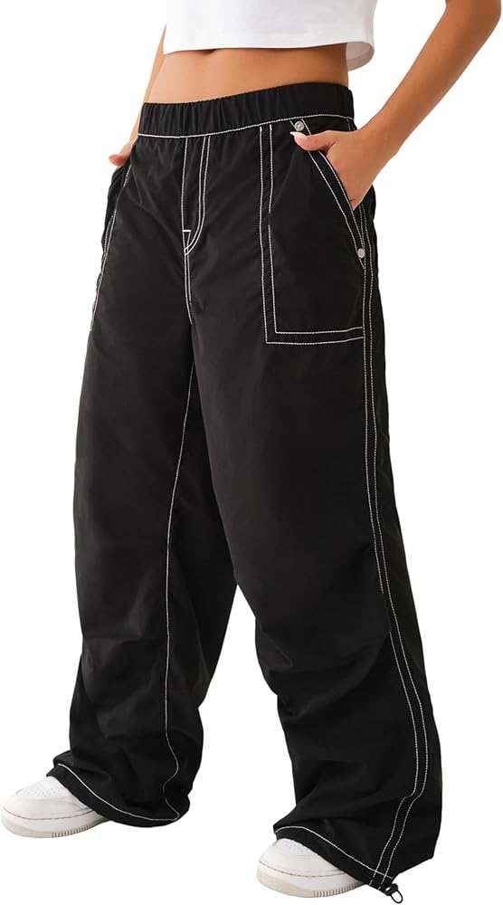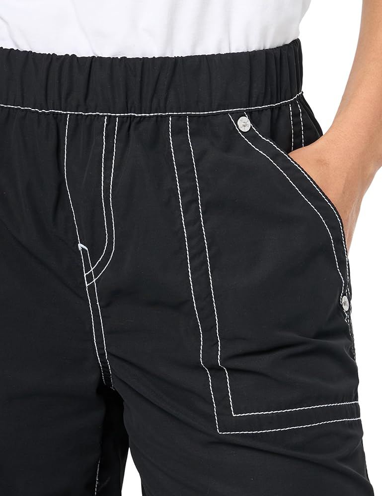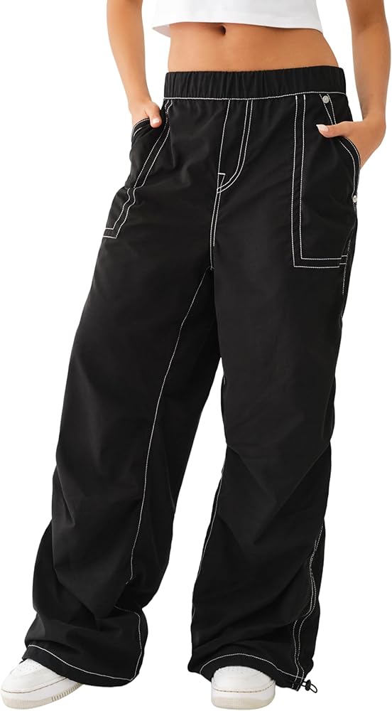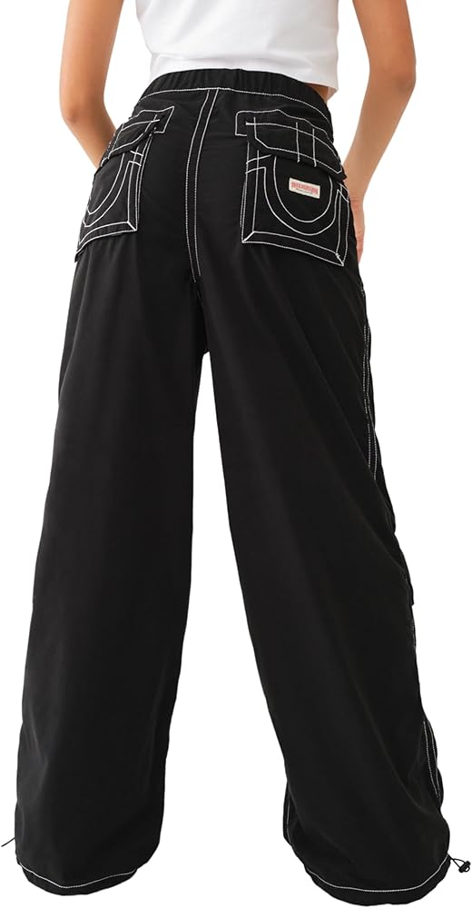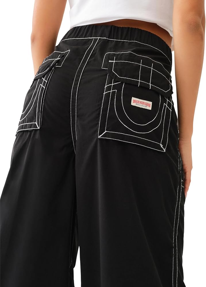 The Parachute Pant is everything you need right now. This women's poly/cotton nylon pant features an elasticized waist, contrast stitching, and relaxed fit. Detailed with hip pockets, and back flap pockets. Finished with a drawcord hems.