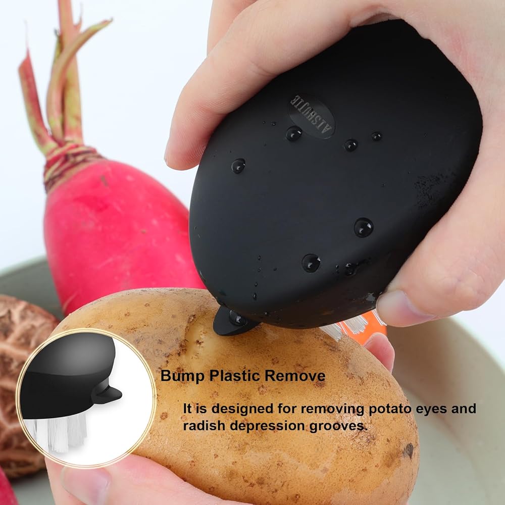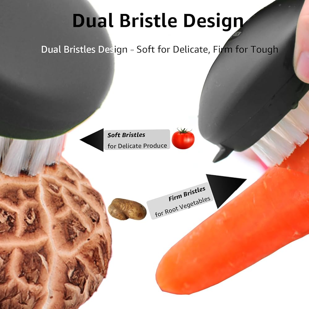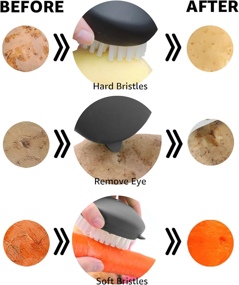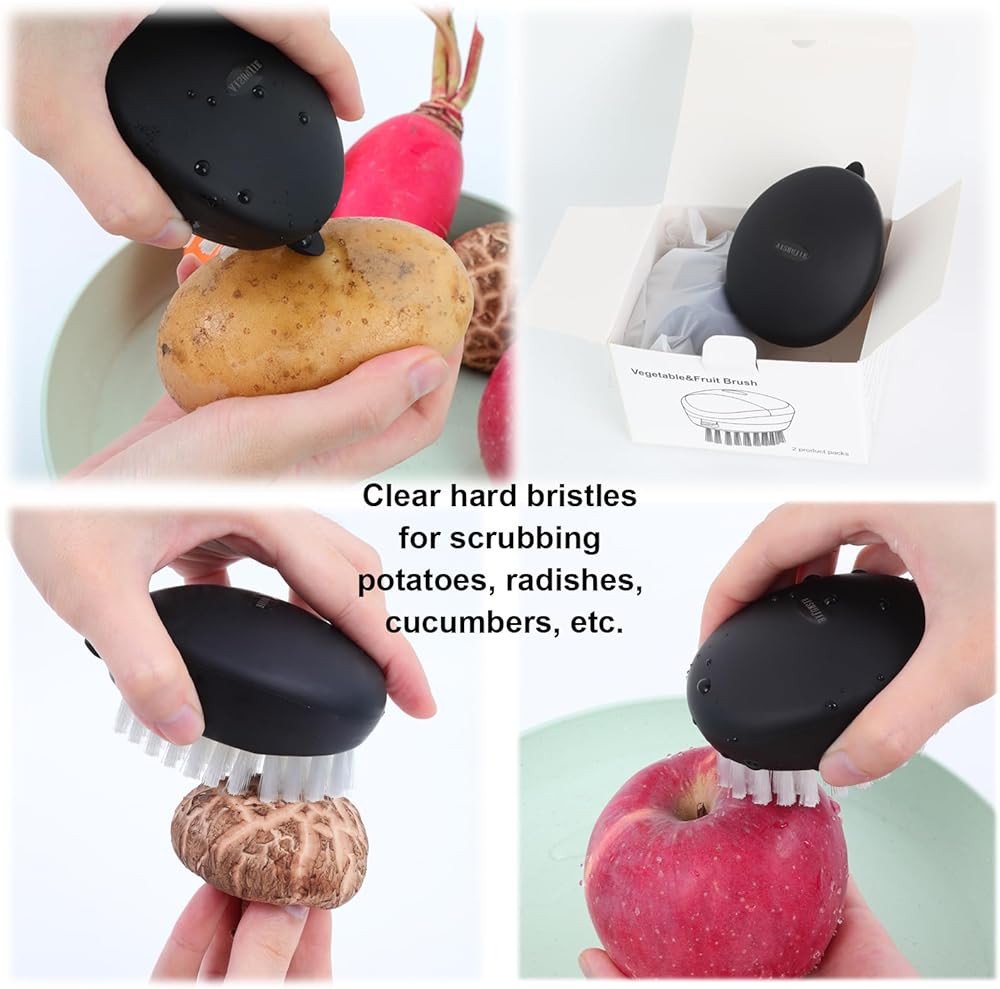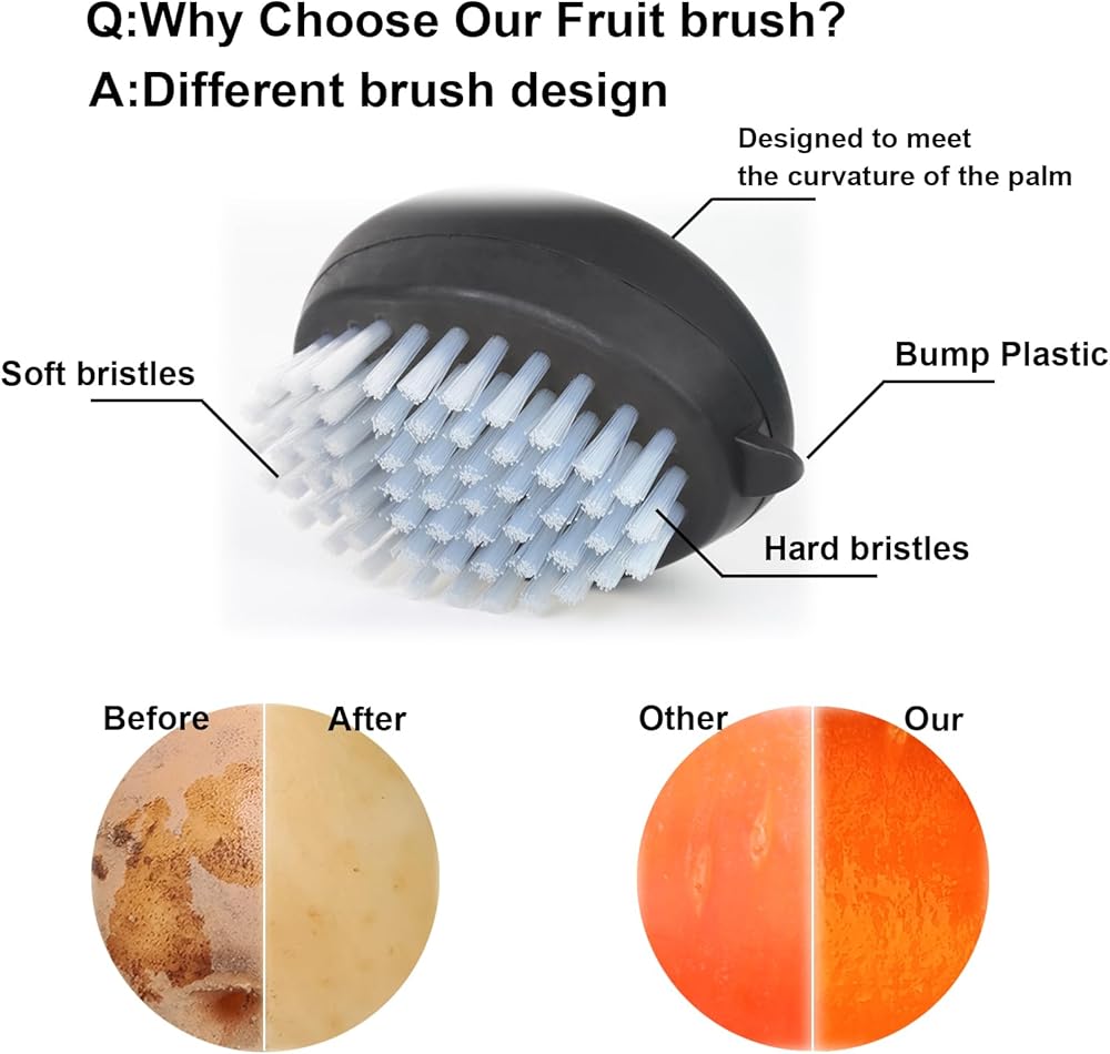 • Multipurpose: Use this convenient vegetable brush to thoroughly clean various agricultural products, including potatoes, mushrooms, carrots, avocados, apples, etc. Enjoy clean fruits and vegetables, free from any wax, dirt, or chemical residue, and you will have a super great fruit and vegetable brush.