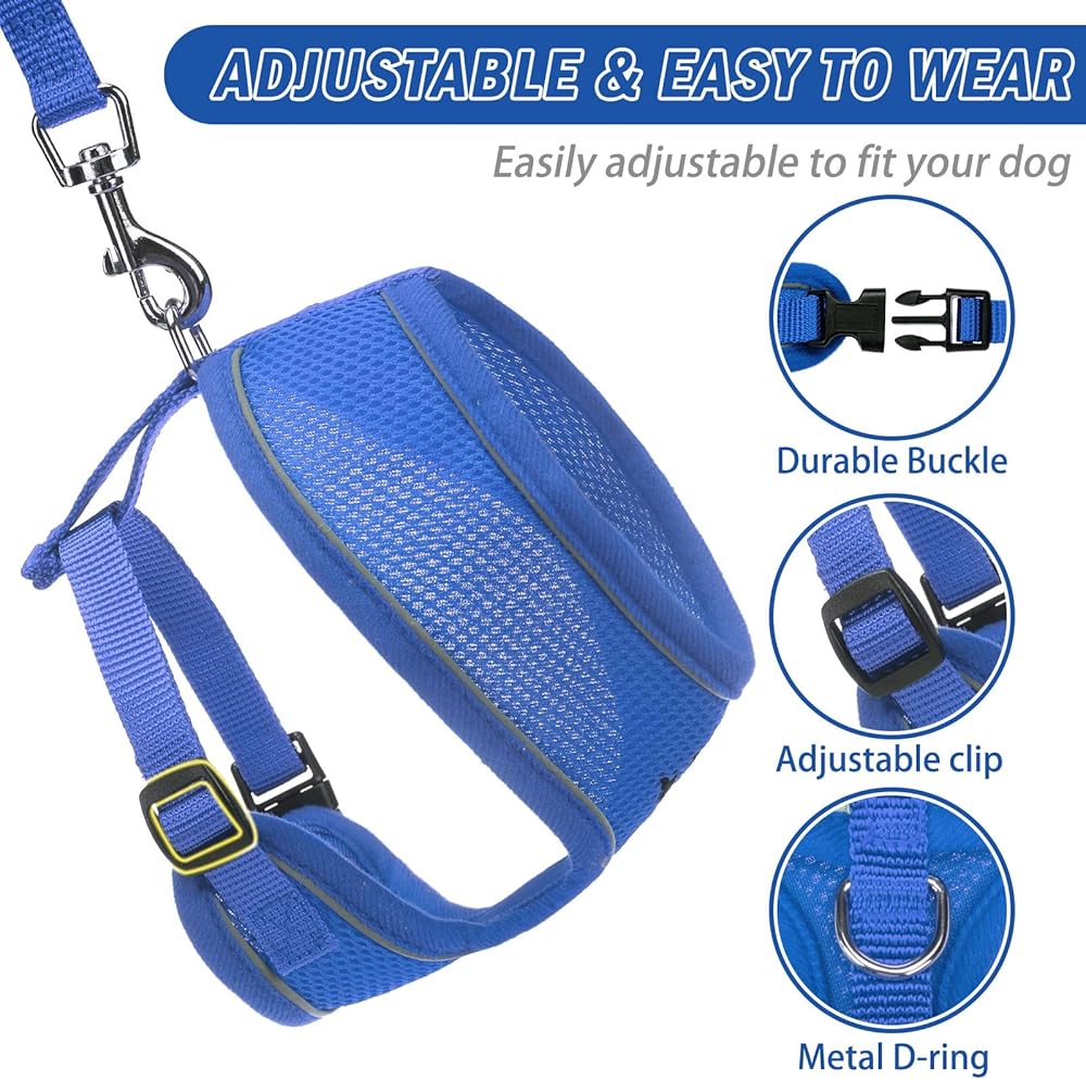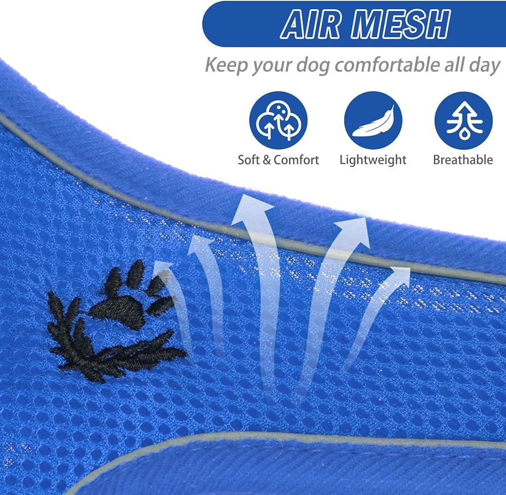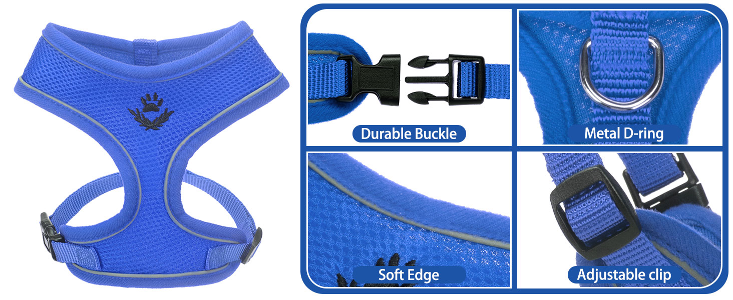 [لا يوجد سحب أو خنق وآمن] - يتم الضغط على السرج بالتساوي، وتكون نقاط الضغط بشكل أساسي على الصدر والكتفين، لذلك لن يمسك برقبة كلبك، ويمكن لكلبك أن يتنفس بحرية. تصميم مبطن يقلل من احتكاك الرقبة، والحلقة المعدنية على شكل حرف D تربط بسهولة بخطافات المقود، وليس من السهل التأرجح، مما يمنع الاختناق والسحب.