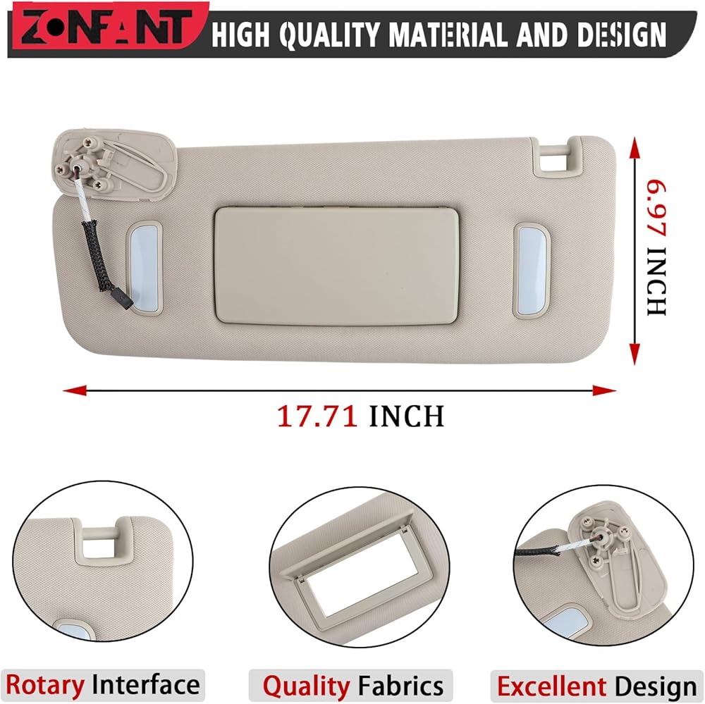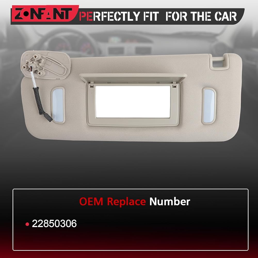 ZONFANT رمادي الجانب الأيسر سائق قناع الشمس متوافق مع 2007-2014 كاديلاك إسكاليد ESV EXT ESV تشيفي أفالانش سيلفرادو سوبربان تاهو جي إم سي سييرا يوكون، استبدال #22850306