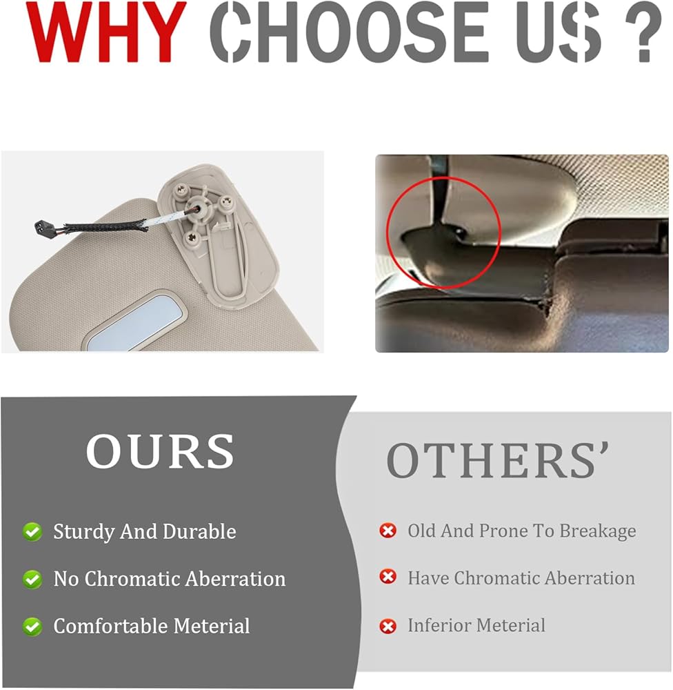 • 【Easy to install】 - Perfect to replace your old sun visor, no screws needed. You can directly replace the old and the bad ones in the car and Partially install the bracket cover into the sun visor bracket making sure both temporary set claws are engaged.