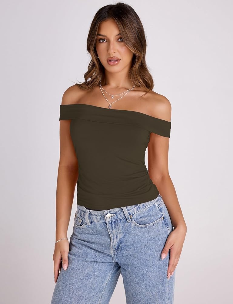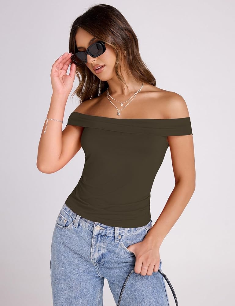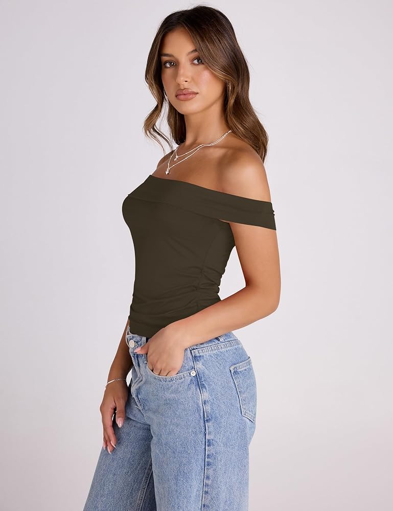 ❤التصميم: يتميز هذا القميص العصري Y2K للنساء بدون أكتاف، وتفاصيل مكشكشة، وطول قصير، وأكمام قصيرة، ولون ثابت، ومقاس نحيف، ونمط لطيف ومثير. سيُظهر هذا الجزء العلوي منحنياتك في كل مرة ترتديه.