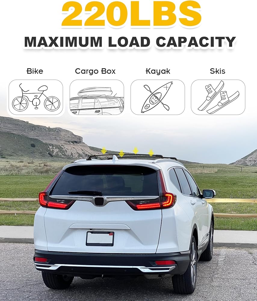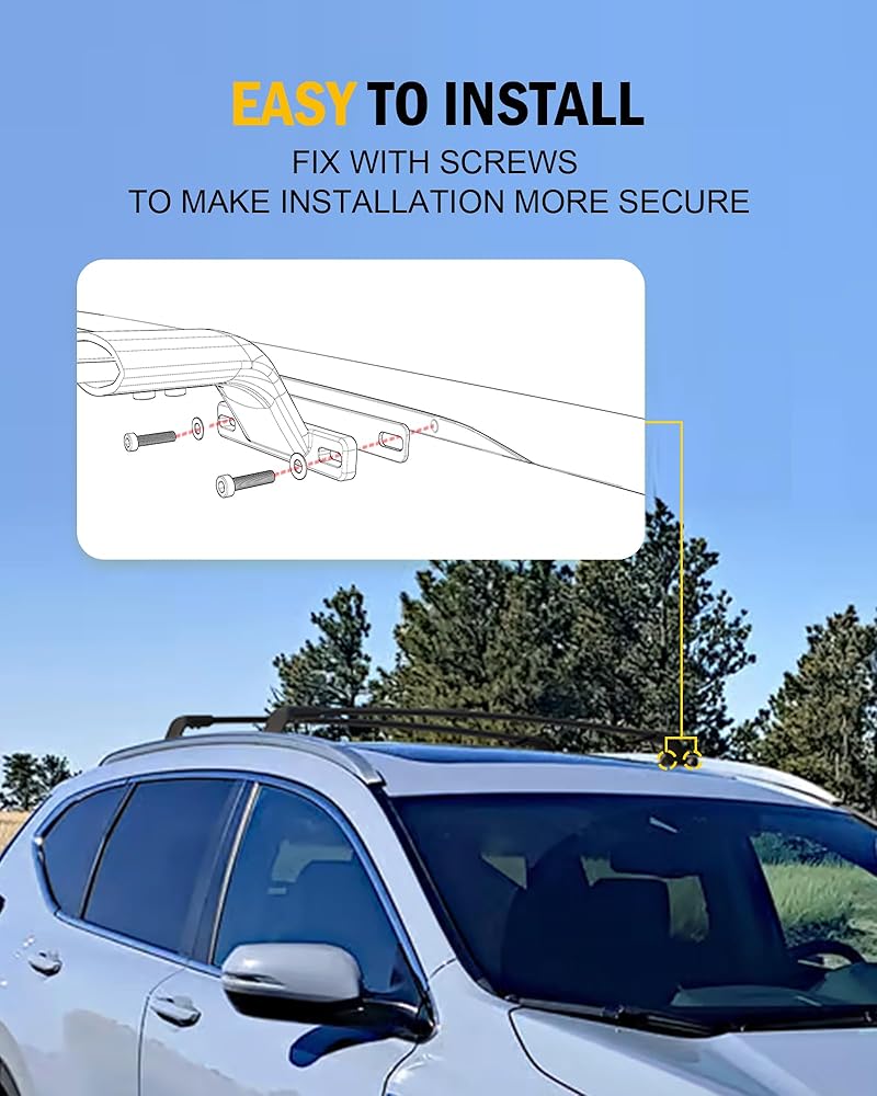 متعددة الوظائف - يمكن استخدامها مع صناديق السقف وإطارات السقف لحمل أمتعة السفر، وزيادة مساحة تخزين السيارة بشكل عام ومساعدتك على حمل المزيد من البضائع، مثل رف الدراجة، ورف الكاياك، وألواح التزلج على الجليد، إلخ.