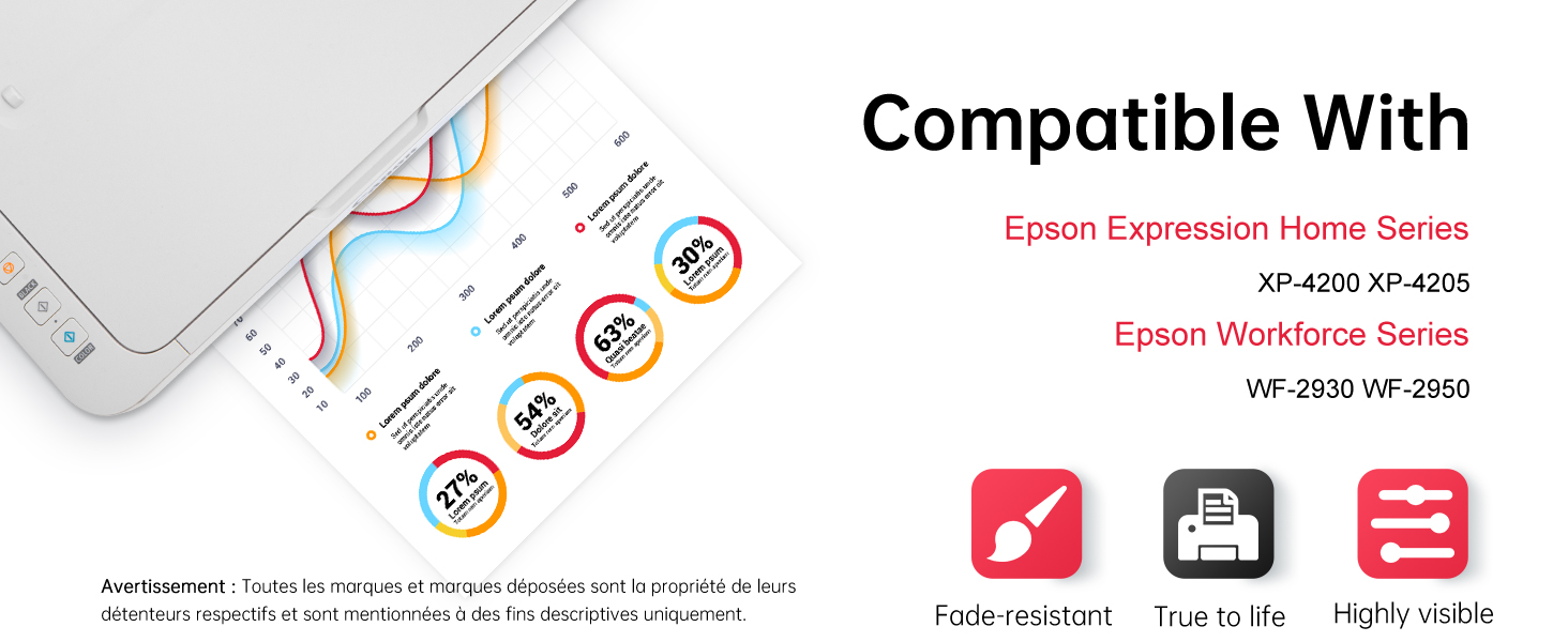 • ✔️الطابعات المتوافقة: لـ Espon Expression XP-4200، XP-4205، Workforce WF-2930، WF-2950.