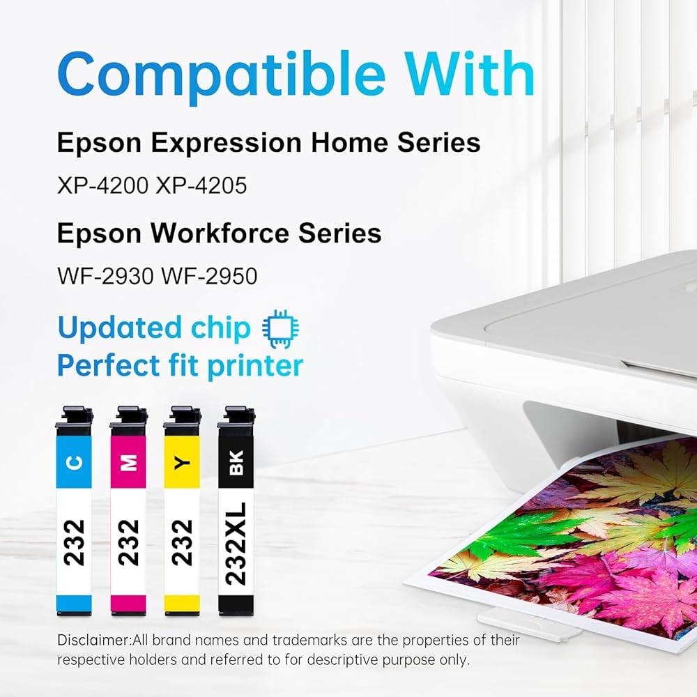 • ✔️طباعة عالية الجودة: تستخدم مجموعة خراطيش الحبر Epson 232XL البديلة تقنية النفث المتطورة وتركيبات الحبر الممتازة التي توفر مطبوعات واضحة ونابضة بالحياة، مما يؤدي إلى نصوص وصور أكثر تفصيلاً ونابضة بالحياة.