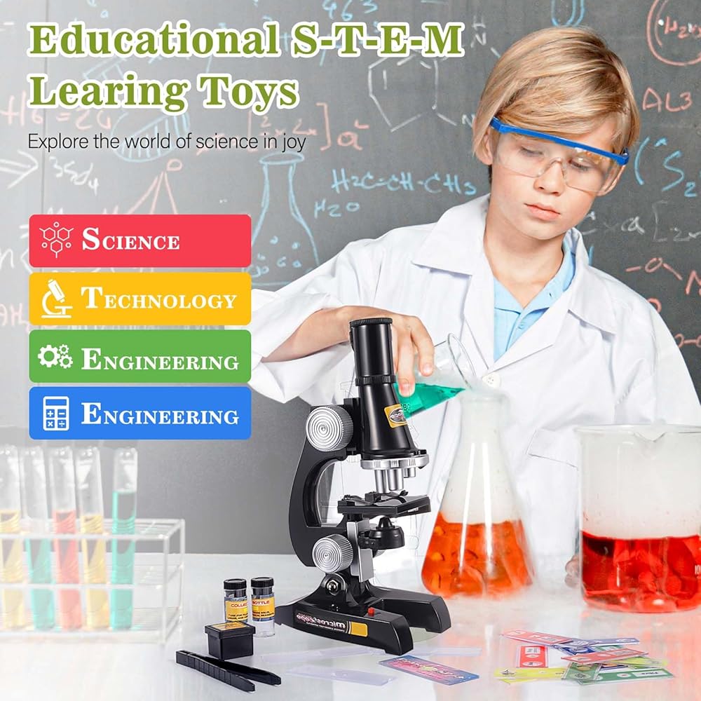 مجهر للأطفال - مجموعة مجهر تعليمية للأطفال من سن 8 إلى 12 عامًا تشجع الاستكشاف والاكتشاف العلمي، وسهلة التشغيل والتصوير بوضوح، وتقدم أداة علمية رئيسية بطريقة ممتعة.