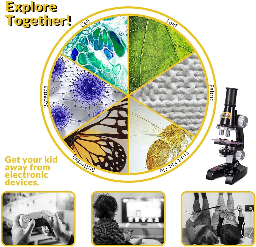 تكبير عالي - يوفر المجهر للأطفال المبتدئين تكبيرًا عاليًا للتطبيقات التعليمية، وتكبير 100X، و400x، و1200x. وهي مناسبة للأطفال فوق سن 3 سنوات.