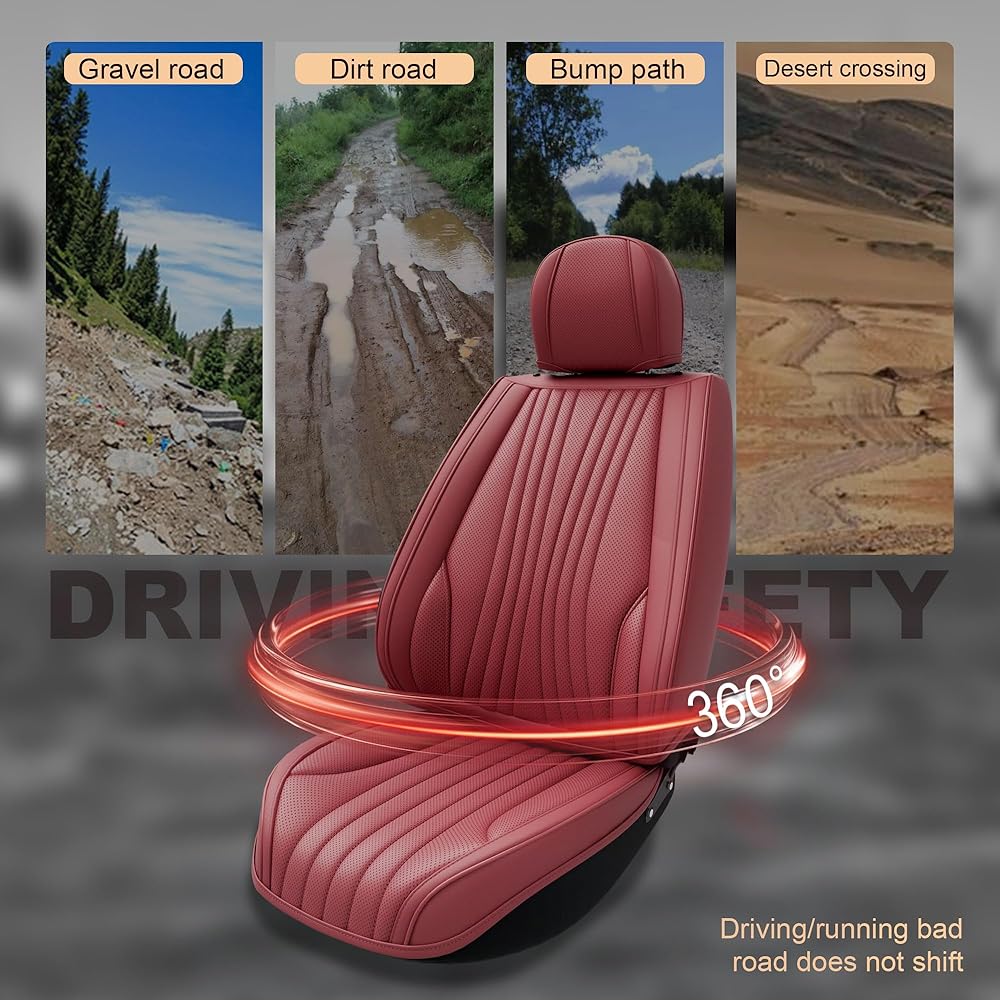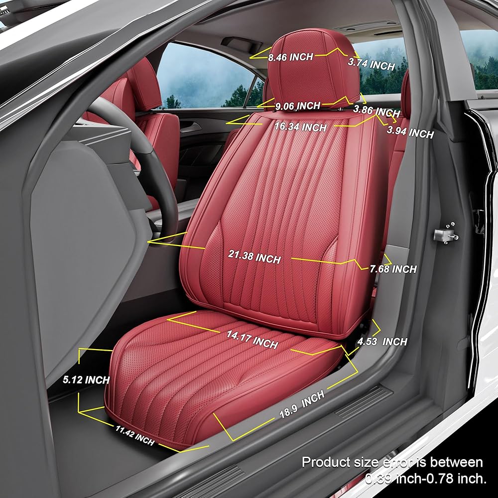 ►اختيار عالي الجودة: نوصي بشدة لأي شخص يبحث عن أغطية مقاعد السيارة التي لن تبدو مثل الأغطية الرخيصة والمرتخية على الأريكة القديمة المتعبة؛ لأي شخص لا يريد إخفاء المقاعد الجلدية الجميلة بأقمشة ثقيلة أو أغطية من النيوبرين. أغطيتنا لا يمكن تمييزها عن الجلد، كما أنها سهلة التنظيف مثل مقاعد سيارتك - وربما أسهل.