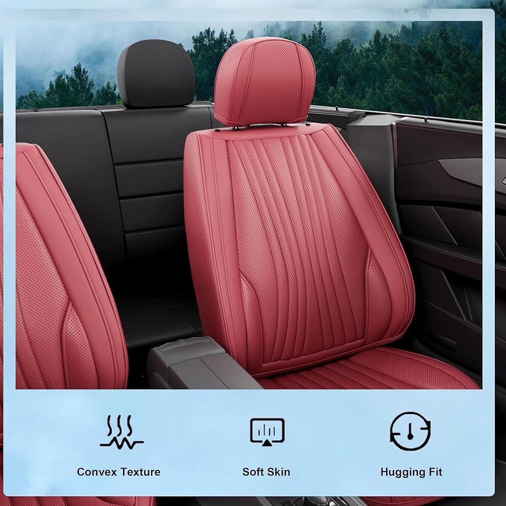 ► فائقة النعومة والفخامة: مع جلد نابا عالي الجودة، فإن الأغطية ناعمة تمامًا، وتشعر بالفخامة وشبه المرنة وتأتي مع دعم للرقبة، ومريحة جدًا وأنيقة - لا يمكن تصنيفها على أنها أغطية، مثل مقاعد السيارة المادية التي تعلوها مقاعدك الخاصة كقاعدة.