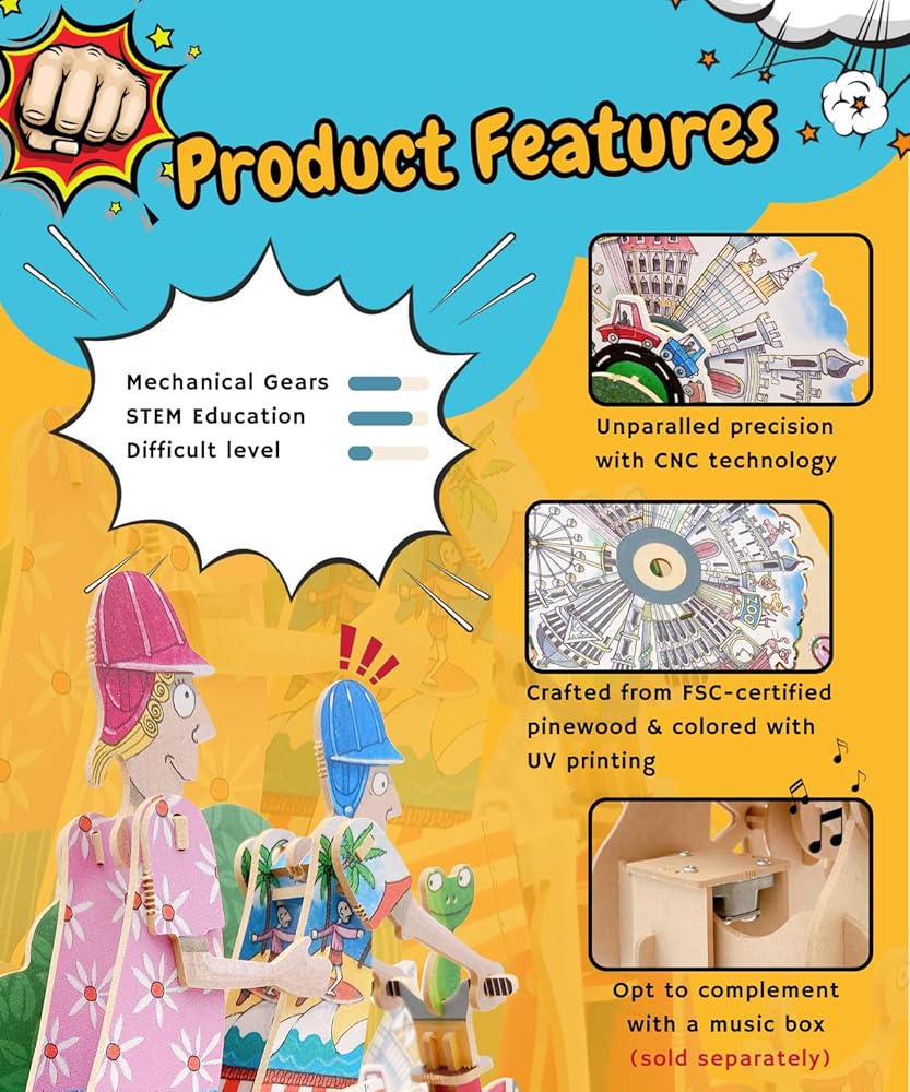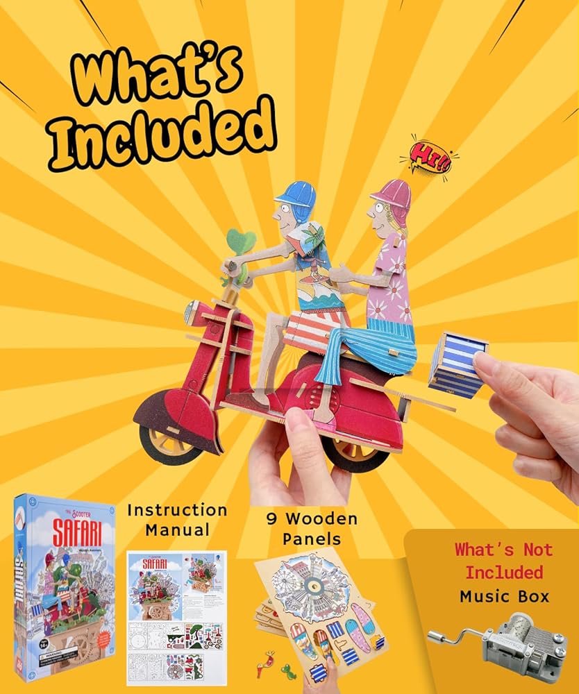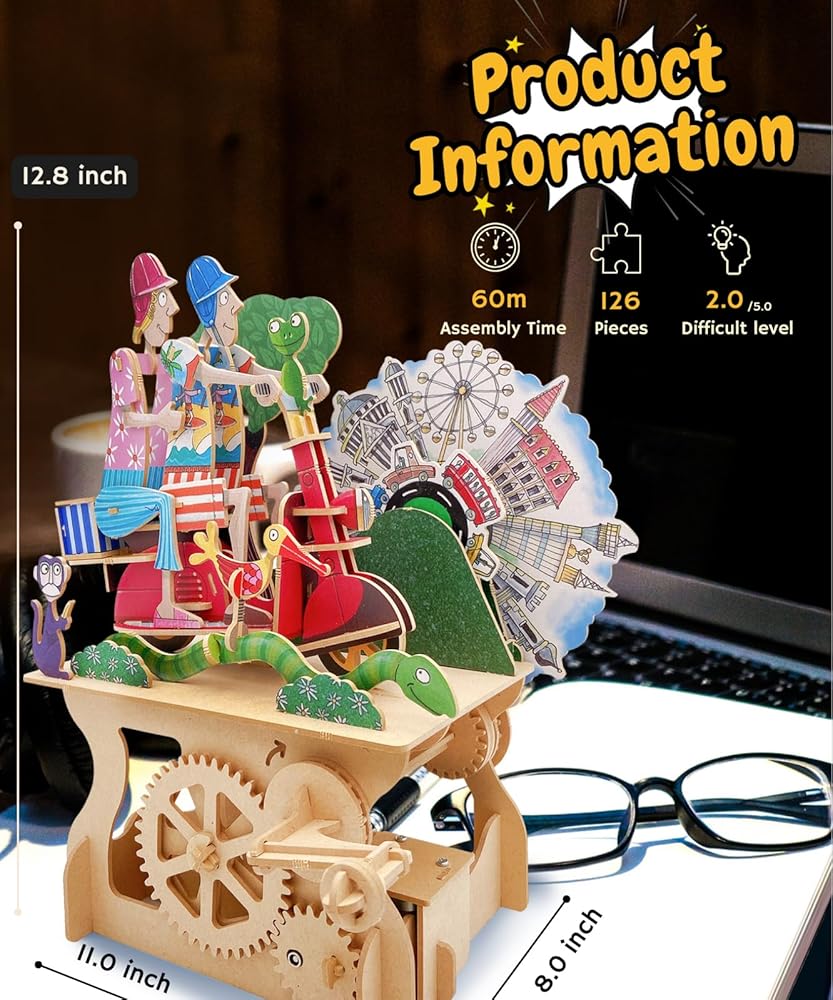 iló ألغاز ثلاثية الأبعاد للبالغين، مجموعة نماذج ألغاز خشبية ميكانيكية ذاتية الصنع للبالغين والمراهقين، مجموعات بناء للأطفال بعمر 14 عامًا فما فوق، صندوق الموسيقى غير متضمن، ألعاب العلوم والتكنولوجيا والهندسة والرياضيات، هدية فريدة من نوعها، ديكور، سكوتر س
