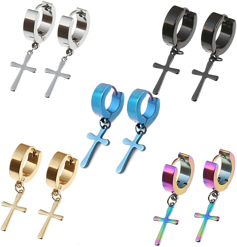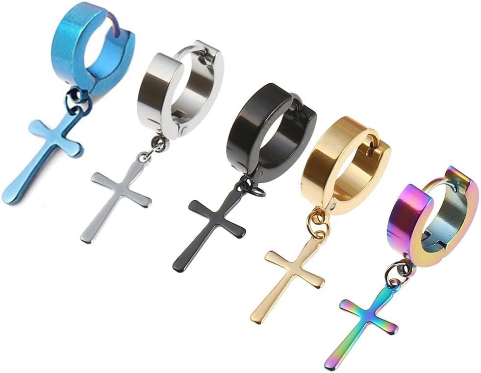 مجموعة 5 أزواج من الأقراط المصنوعة من الفولاذ المقاوم للصدأ المثقوبة والمتدليّة المتدلية كهدية للرجال والنساء