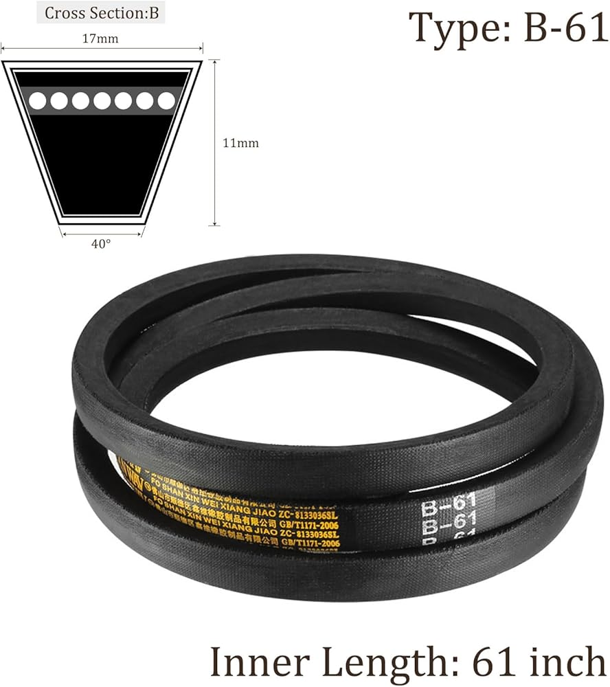 • 1- PACKAGE CONTENTS -1pcs 61" Inner Length x 17mm Width x 11mm Thickness B-Section Rubber Drive Belt