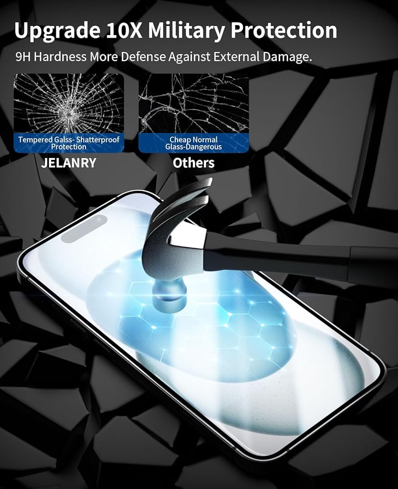 واقي شاشة Jelanry لهاتف iPhone 15 Plus مقاس 6.7 بوصات مع واقي عدسة الكاميرا [مجموعة من 4 قطع] | طبقة من الزجاج المقسى بصلابة 9H شفافة عالية الدقة| مقاومة للخدش| جزيرة ديناميكية متوافقة| حافظة هاتف صديقة للبيئة