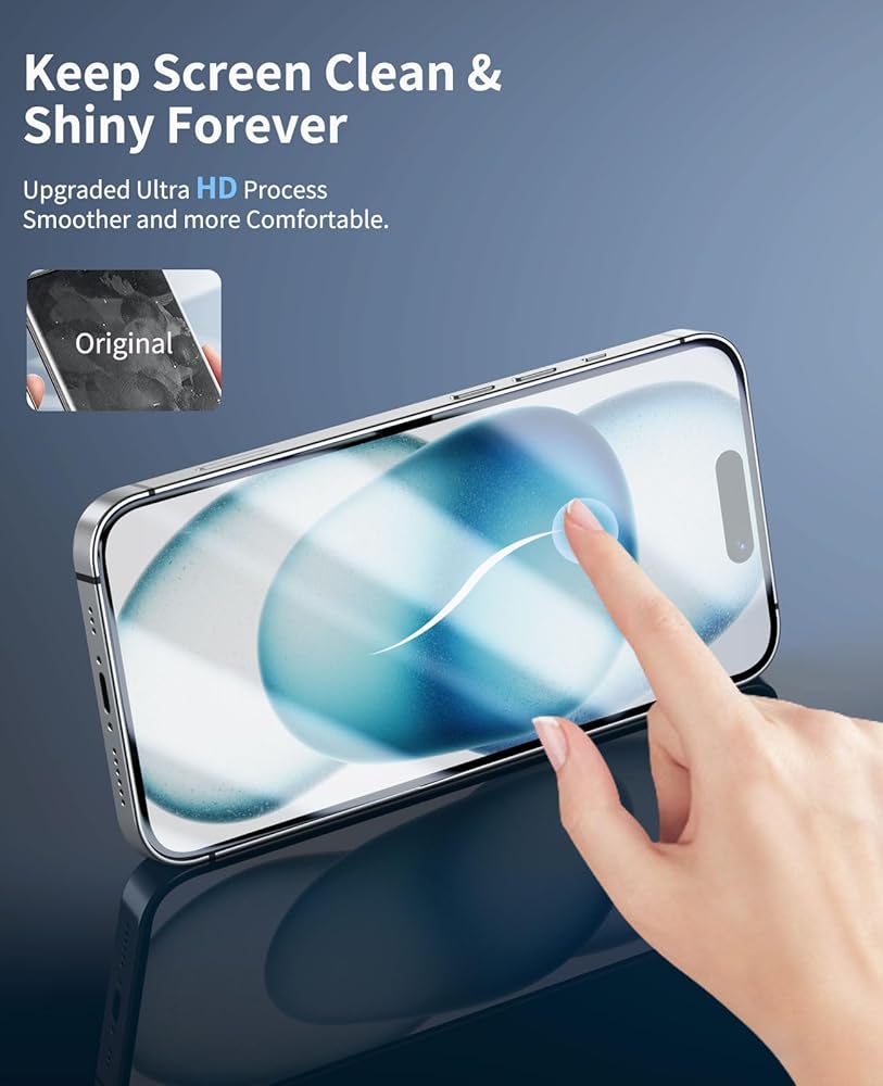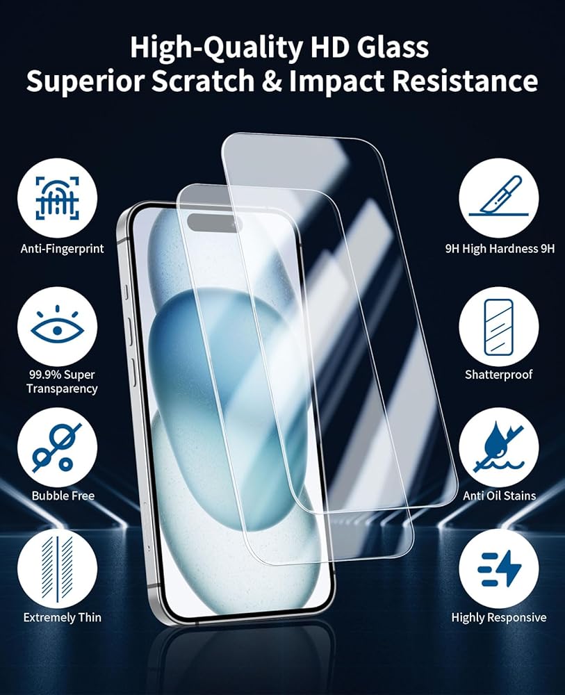 ✅إنه زجاج مقسى جديد تمامًا بنسبة 100%، مقطوع بالليزر بدقة، مصقول بشكل رائع. يتوافق واقي شاشة iPhone 15 Plus أيضًا مع Dynamic Island وFace ID. تحافظ الشفافية والوضوح العاليان على جودة العرض الأصلية وحساسية اللمس. بالكاد تلاحظه أثناء وجوده على الشاشة