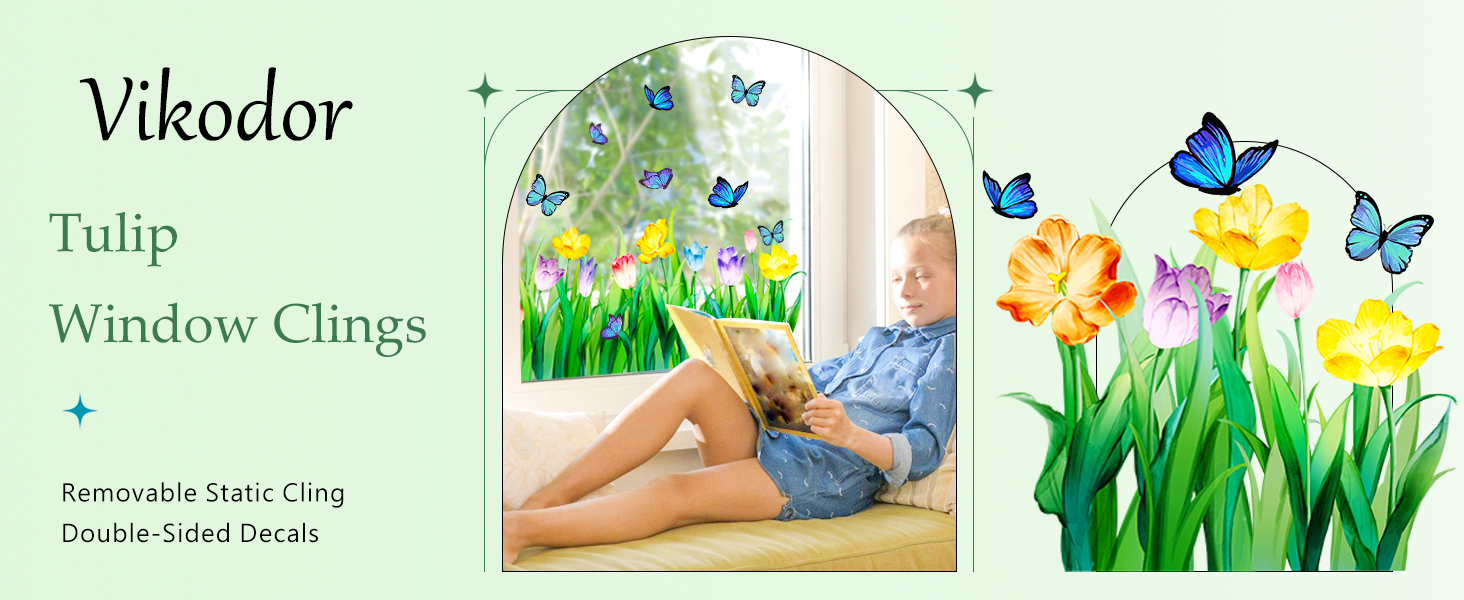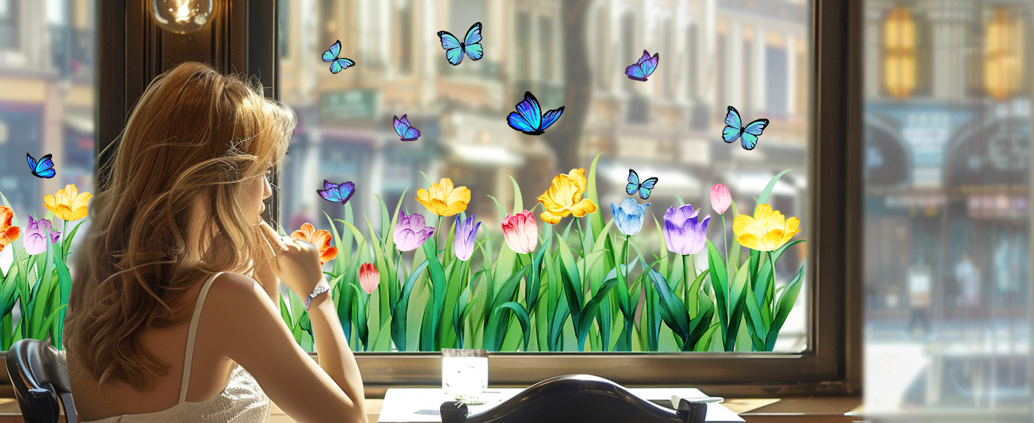 ✅ 【 طباعة على الوجهين 】 - تتميز ملصقات النوافذ الربيعية والصيفية هذه بأزهار التيوليب والفراشات الملونة الجميلة المطبوعة على كلا الجانبين. سواء تم مشاهدتها من الخارج أو من الداخل، فإنها تعرض ألوانًا نابضة بالحياة وأنماط رائعة بشكل واضح، مما يملأ غرفتك بالحيوية والسحر.