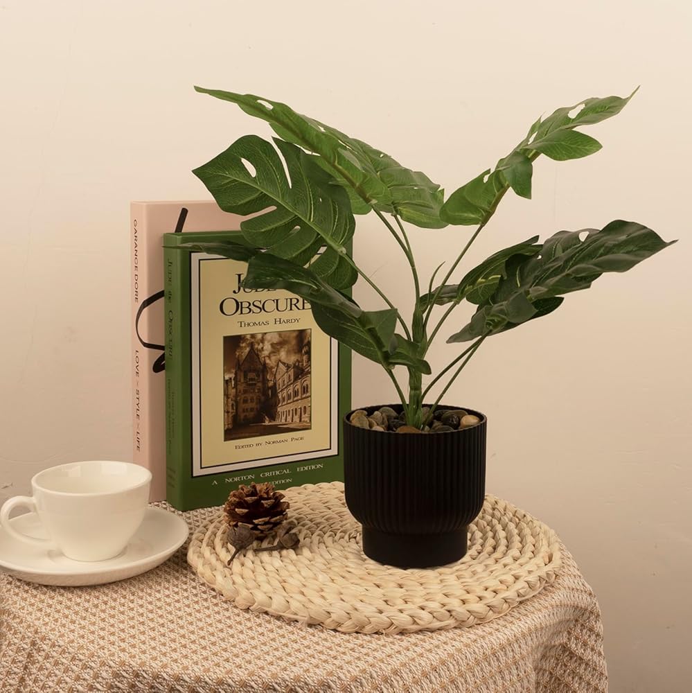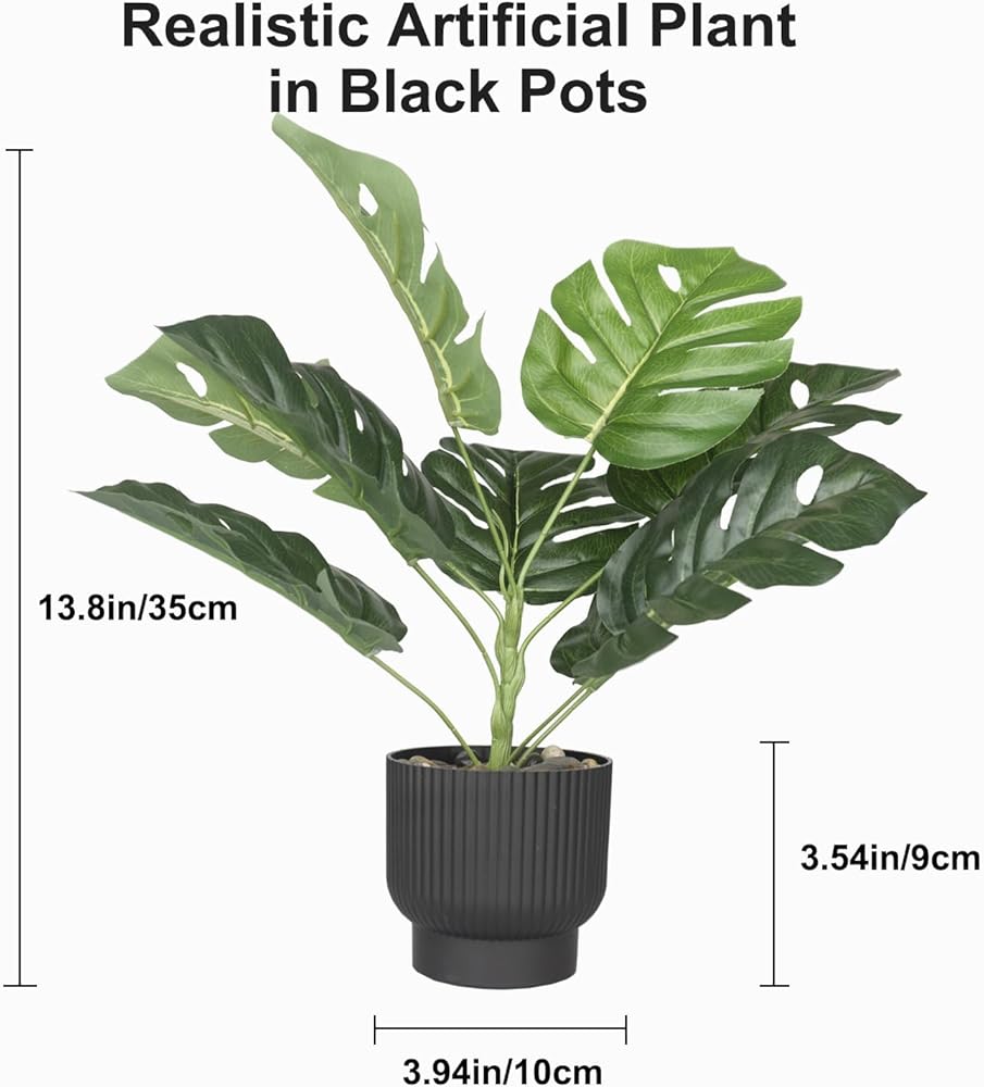 نبات Monstera الاصطناعي مع وعاء أسود، نبات Monstera Turtle Leaf الاستوائي الكبير، نبات Monstera Deliciosa الاصطناعي للأماكن الداخلية والخارجية والمكتب والمنزل والحديقة