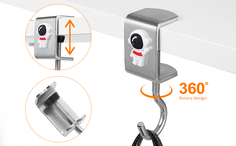 👨🚀🐰👩🚀سمك قابل للتعديل: مصممة لتناسب سماكة المكتب المختلفة، وتتميز خطافاتنا بتصميم قابل للتعديل. سواء كان لديك مكتب سميك أو رفيع، يمكنك تركيبه وتعديله بسهولة لتحقيق ملاءمة مثالية وأقصى قدر من الاستقرار.