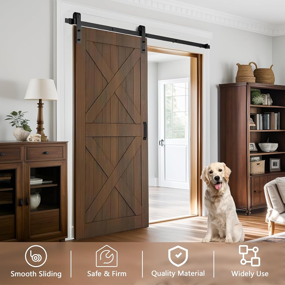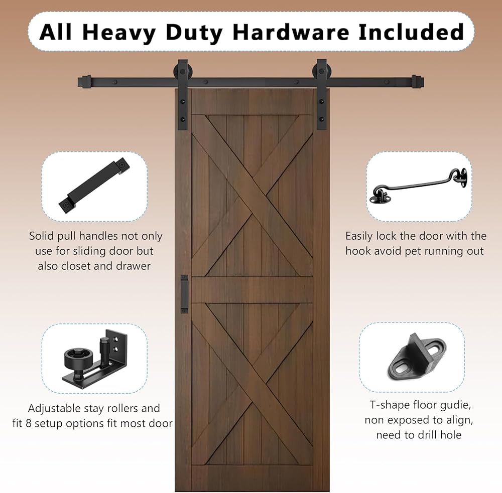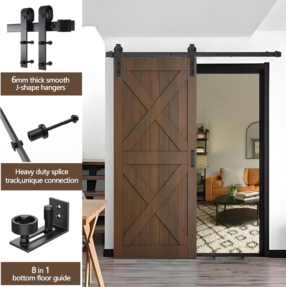 تطبيقات متعددة الاستخدامات أجهزة الباب المنزلق: استخدم براغي التمدد للجدران الأسمنتية والمسامير العادية للأسطح والخزائن الخشبية. يناسب التصميم الريفي مختلف الإعدادات الداخلية مثل المطابخ وغرف النوم وغرف الملابس وغرفة الاستحمام والمزرعة والمطبخ. بالإضافة إلى ذلك، تعمل مجموعة المسار السوداء المقاومة للماء والصدأ كملحق ممتاز للحظائر والجراجات والإسطبلات.
