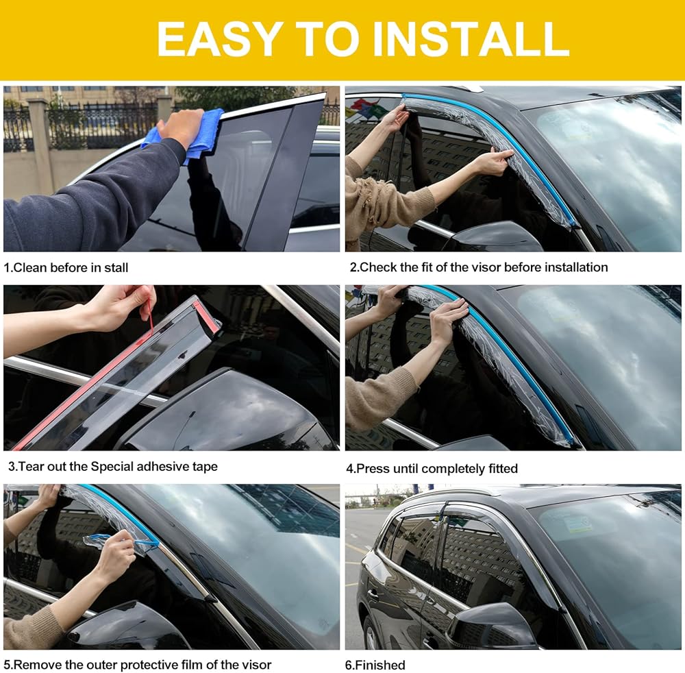 【المزايا: تساعد أقنعة النوافذ الخاصة بنا على تحسين التهوية داخل سيارتك لتقليل ضباب النافذة مع زيادة دوران الهواء، وتحسين السلامة أثناء القيادة عن طريق تقليل ضوضاء الرياح والحفاظ على المطر خارجًا.