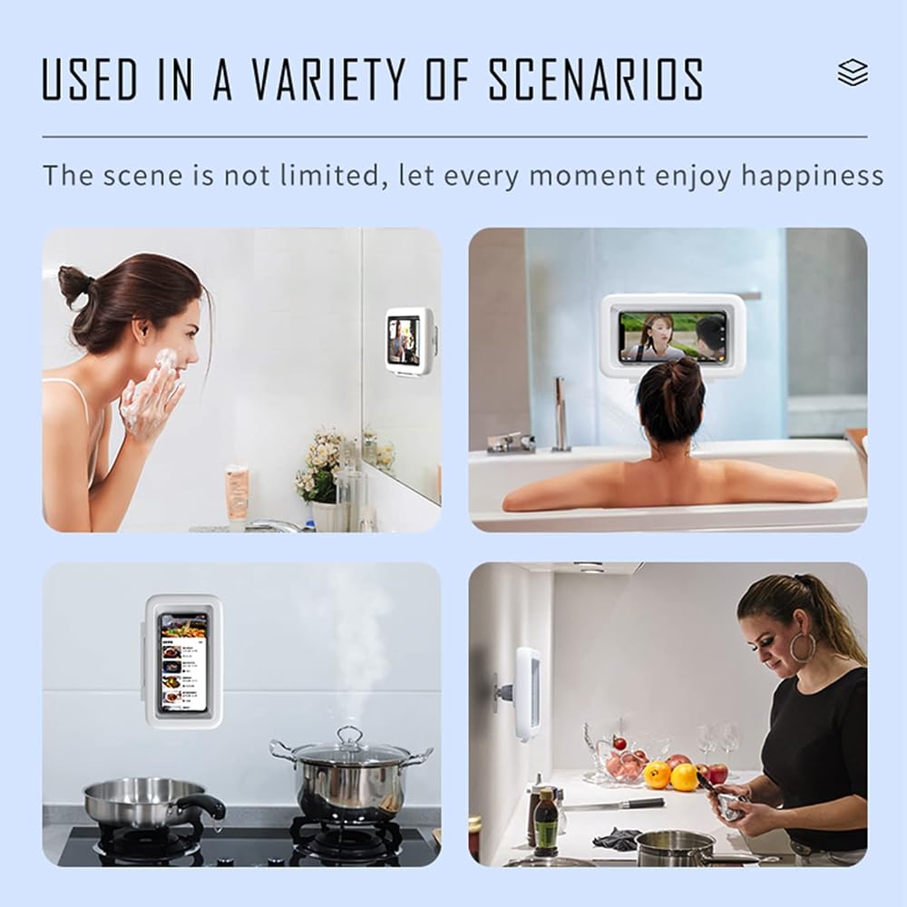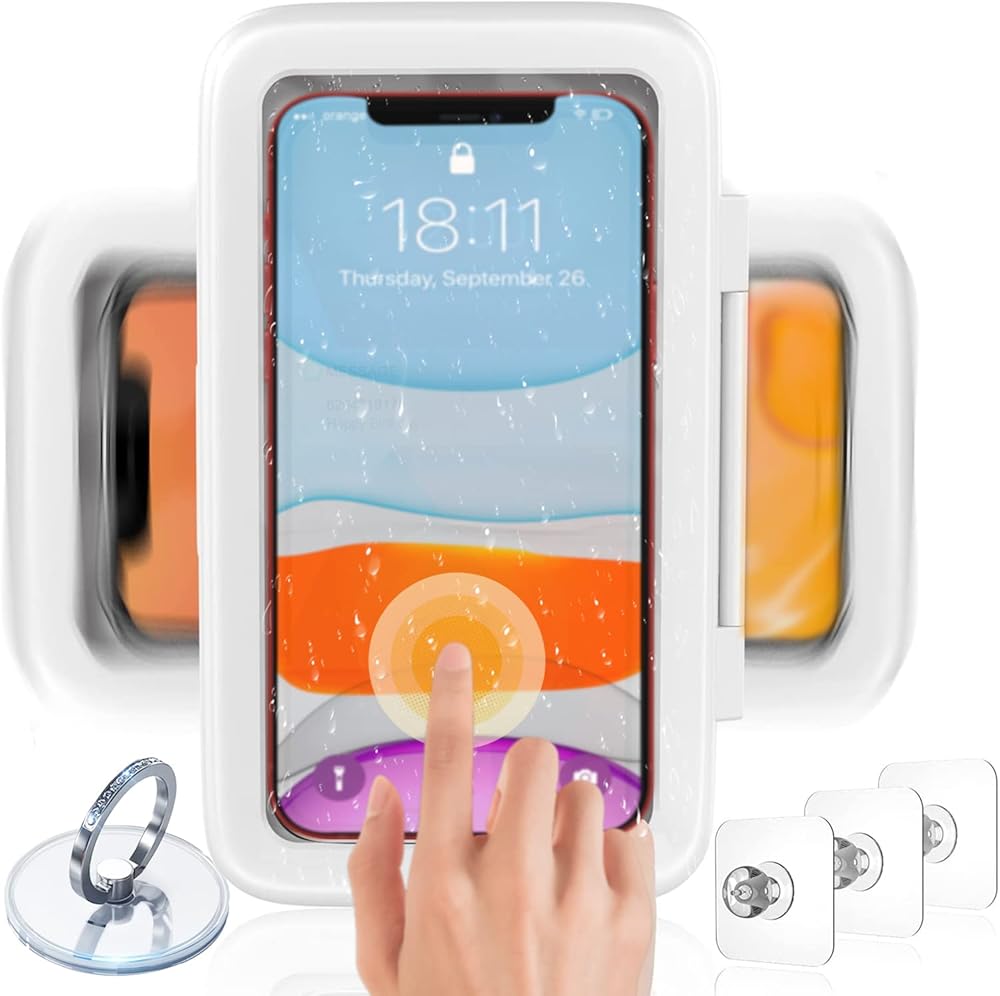 【مقاوم للماء بنسبة 100% ومضاد للضباب】 حامل هاتف الدش مصنوع من مادة أكريلونتريل بوتادين ستايرين الممتازة والمواد الصديقة وله هيكل مزدوج الطبقات مقاوم للماء، ومصمم خصيصًا للاستحمام.