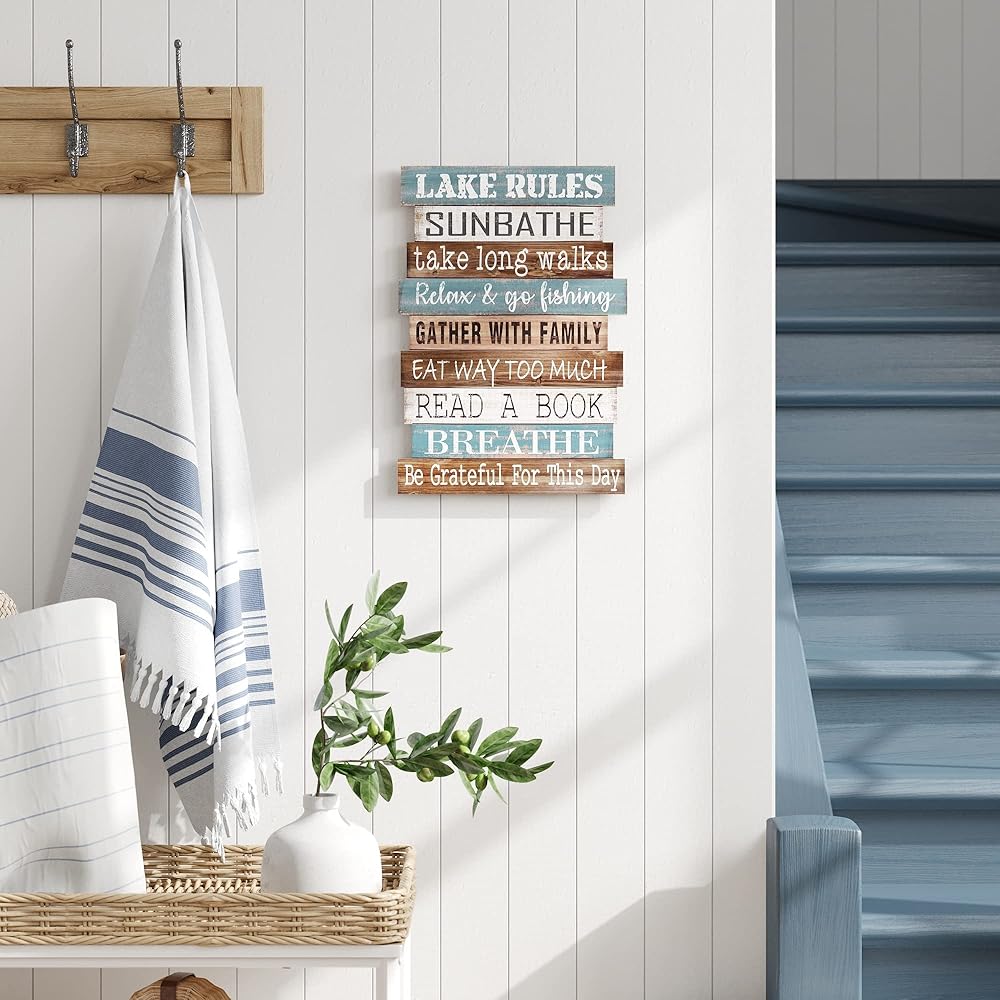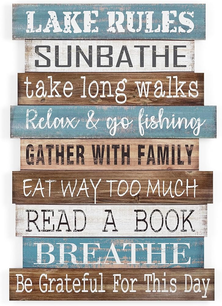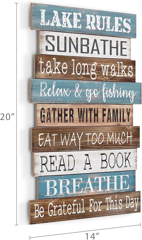 تصاميم بارنيارد 'قواعد البحيرة' ديكور منزل البحيرة للمنزل، علامة بحيرة معلقة على جدار البحيرة، لافتات بحيرة لمطبخ منزل البحيرة، ديكور بحيرة ريفي لعلامة المنزل، 14 بوصة × 20 بوصة