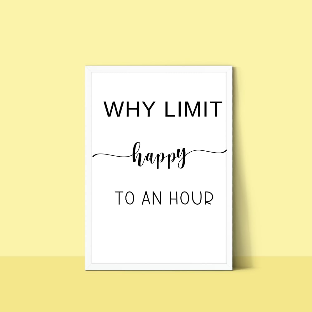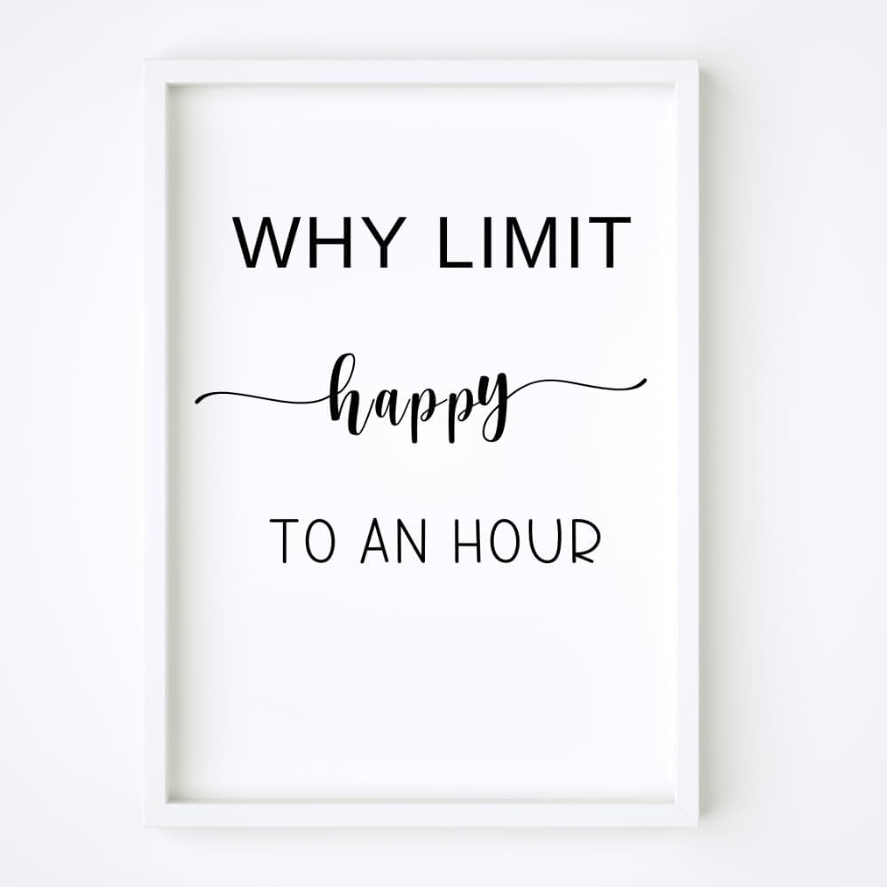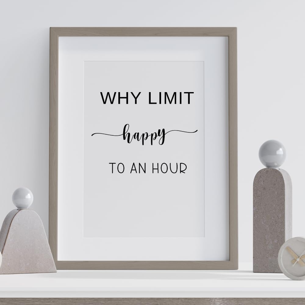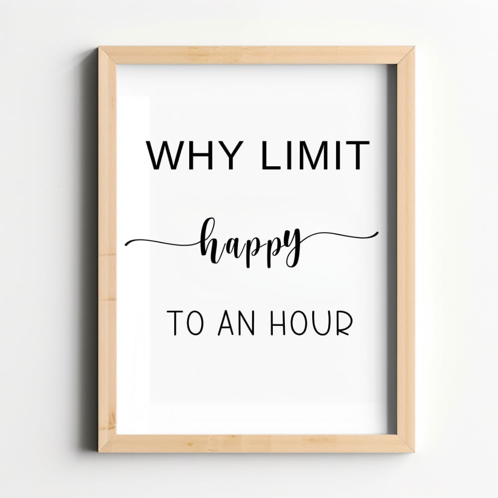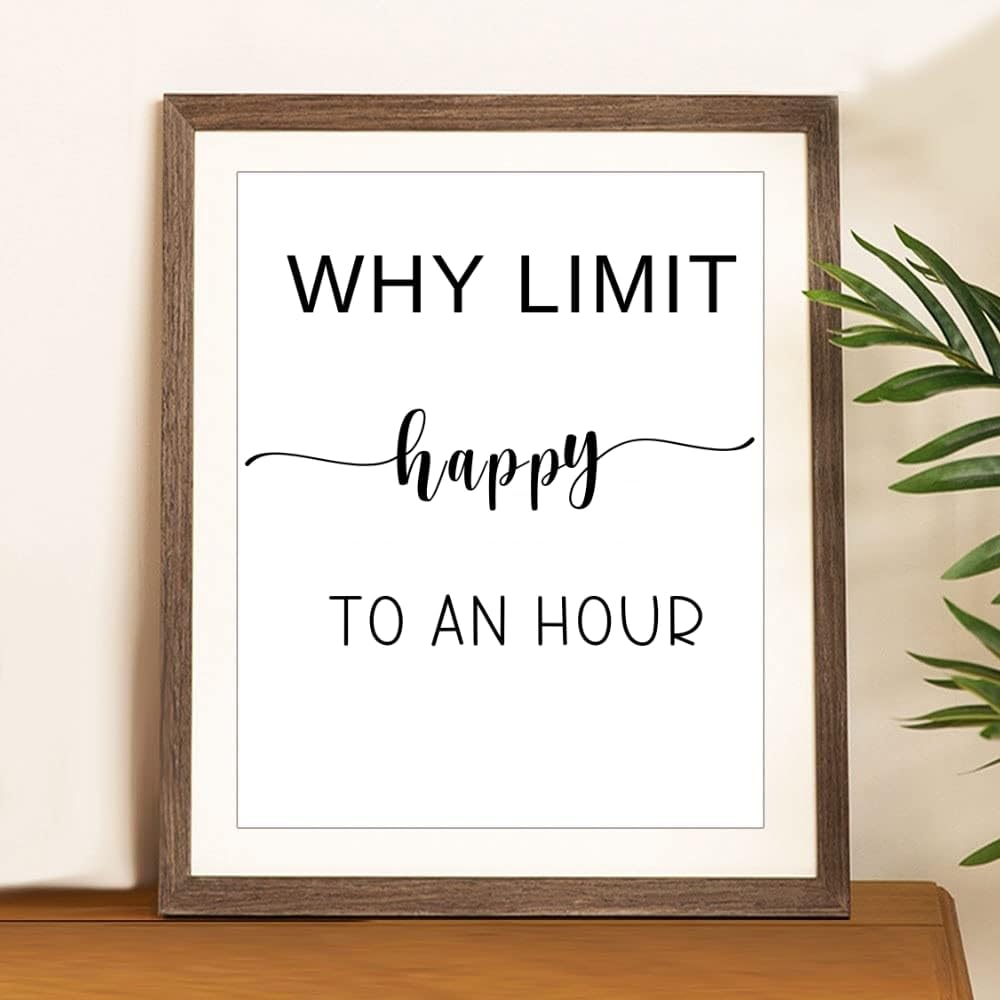 Wowsweet-لماذا الحد من السعادة إلى ساعة، فن جدار المكتب، فن جدار البار، لافتات البار، ديكور حائط مضحك، ديكور مطعم، ديكور جدار المزرعة، ديكور بار المنزل، غير مؤطر (8 × 10 بوصة)